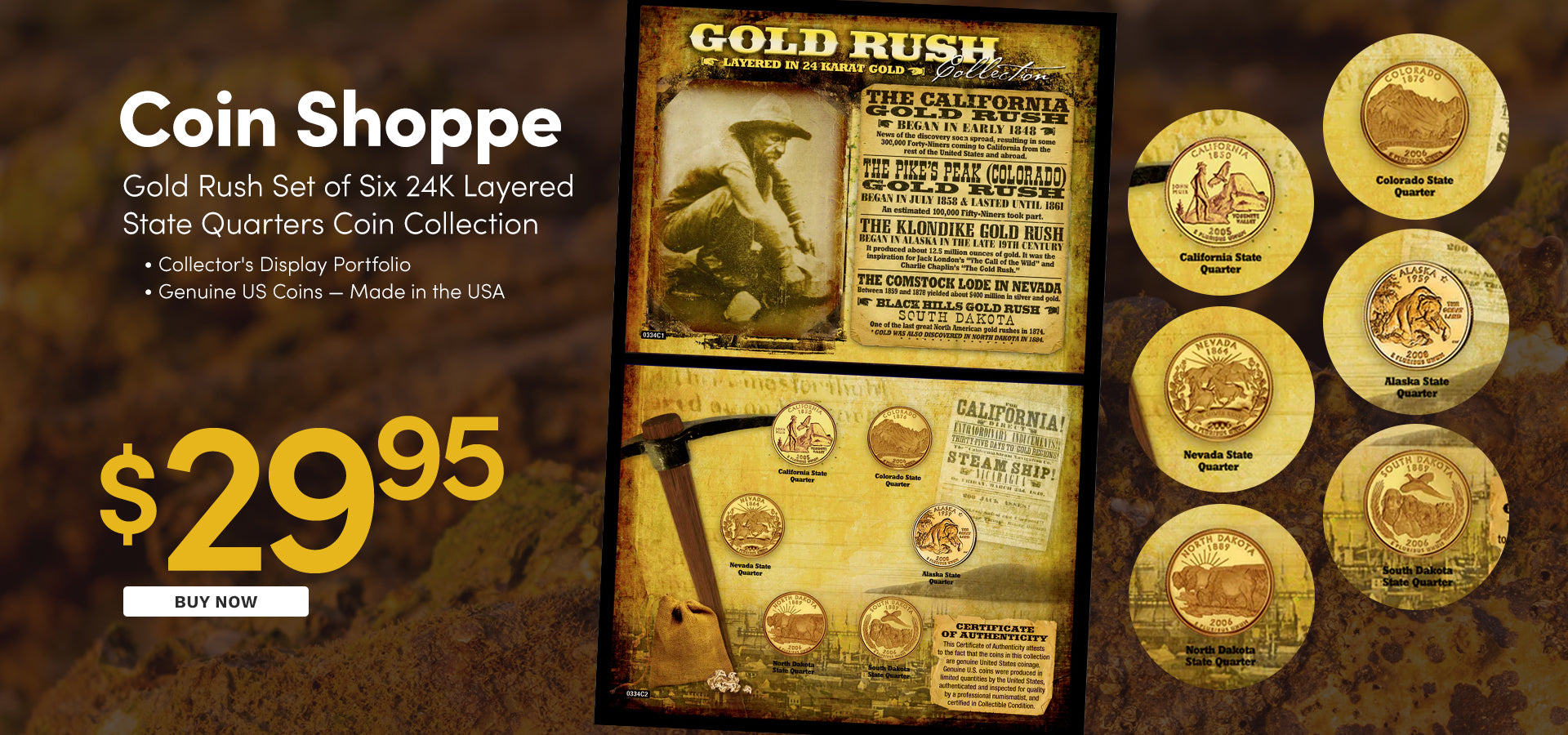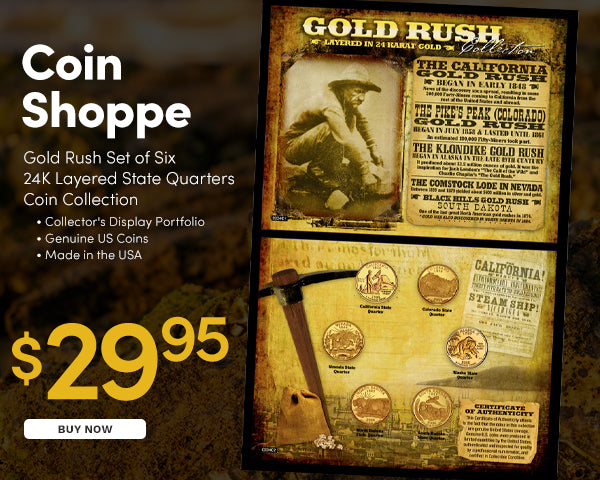 Gold Rush Set of Six 24K Layered State Quarters Coin Collection