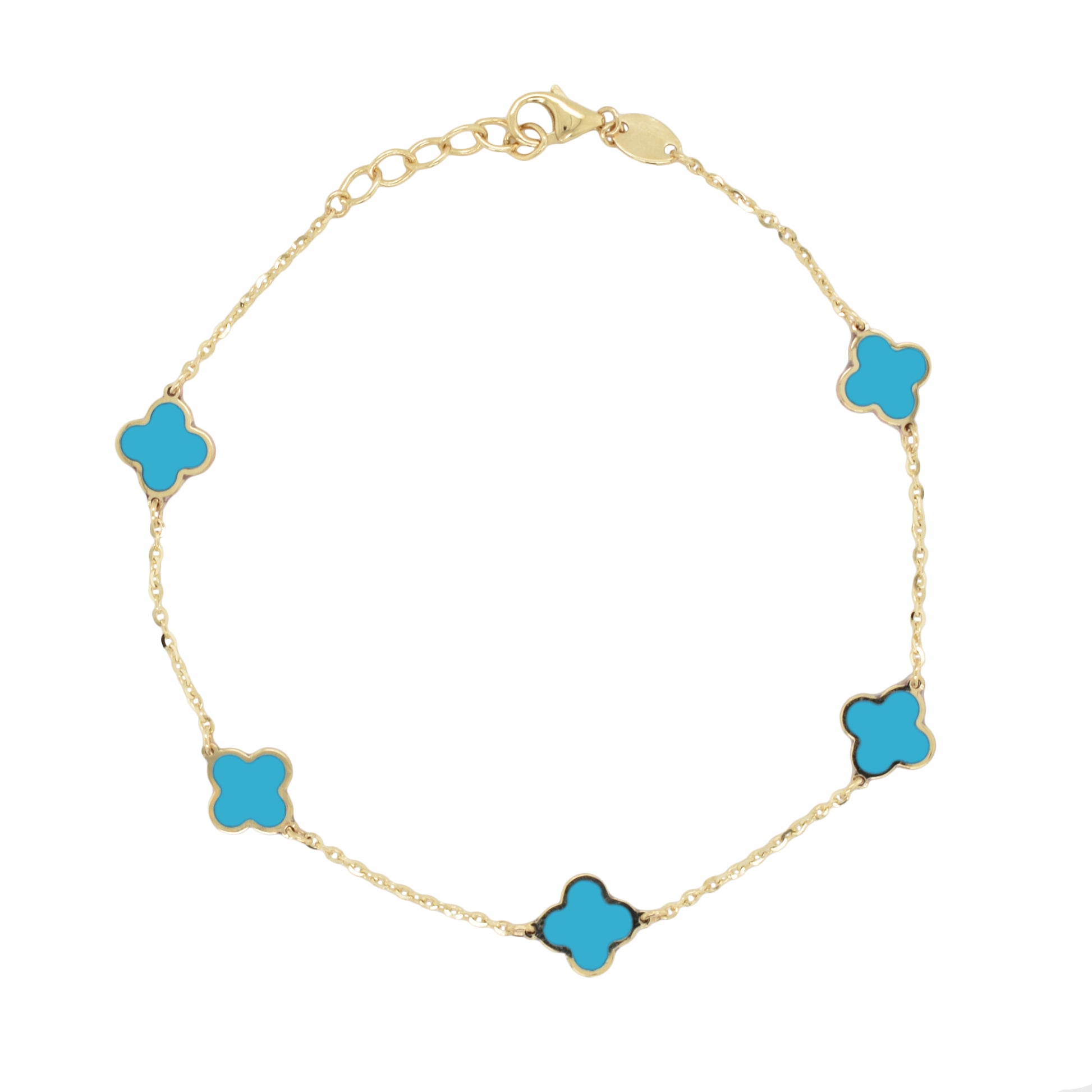 Elevate your jewelry collection with this stunning 14K Italian Gold Gemstone Clover bracelet. Crafted from authentic Italian gold, this 7-inch piece combines timeless elegance with vibrant gemstone accents arranged in a classic clover design. The lustrous gold setting showcases the brilliance of carefully selected gemstones, creating a sophisticated accessory perfect for both everyday wear and special occasions. Whether you're treating yourself or gifting someone special, this bracelet delivers luxury craftsmanship and enduring style that transcends trends.