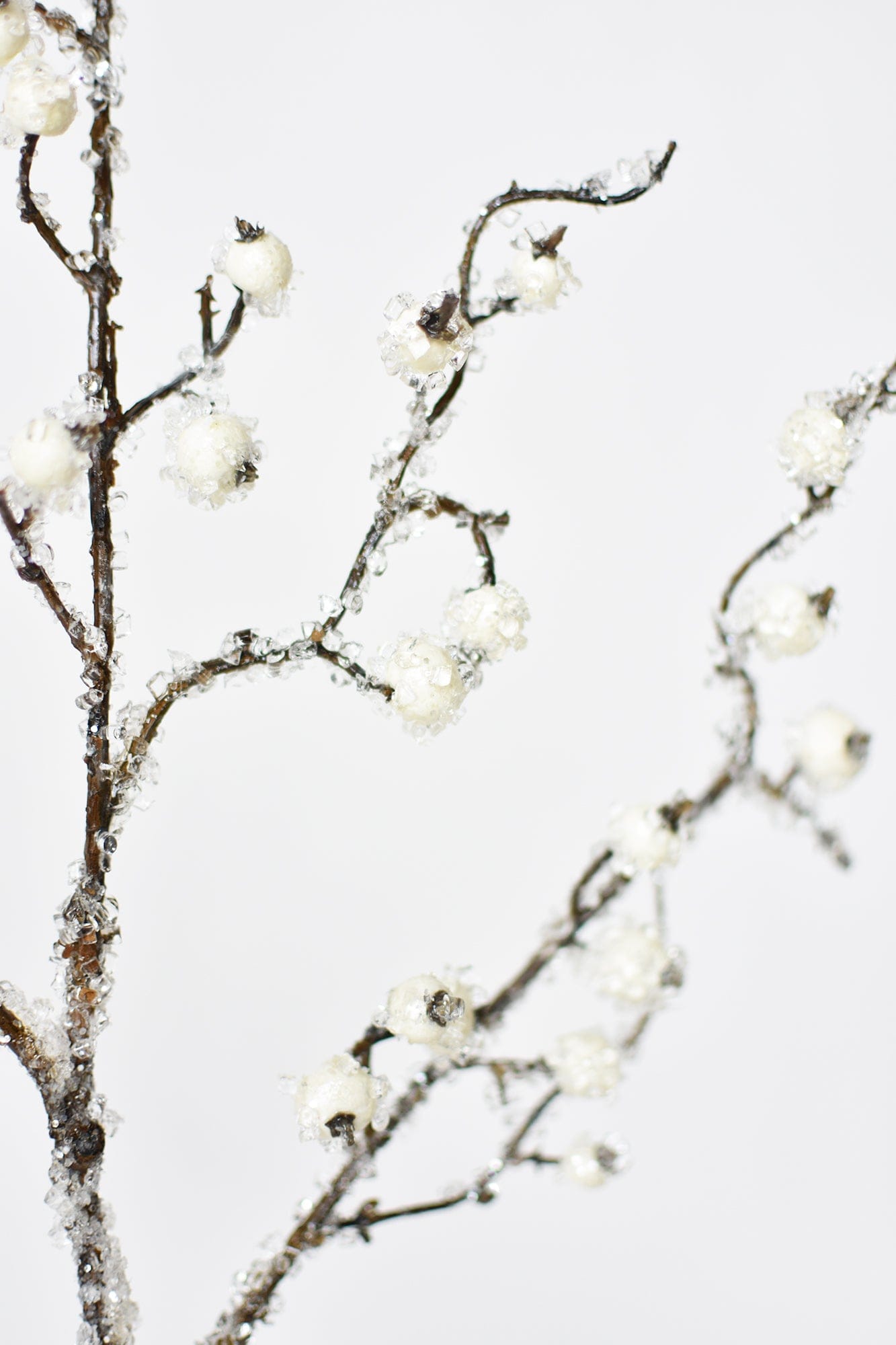 - Total Length of Stem from Top to Bottom: 29" - Splits 12" from the bottom of stem - Approx Number of Berries on Stem: 25+ @ .25 - .5" each on 3 branches - Berries are made from foam, with plastic shell. - 1 Stem seen in primary photo. - Sold by the stem - Is the item considered “real touch”? No - Can item be cut: Yes, with good pair of wire cutters - Suitable for Outside Use: 99% of our items are ok to be used outside! With that said, covered from the elements is always best! And the sun will cause the items to fade over time just like anything else! If you have any questions specifically about this item, don’t hesitate to send us a message and we’ll tell you what we know.