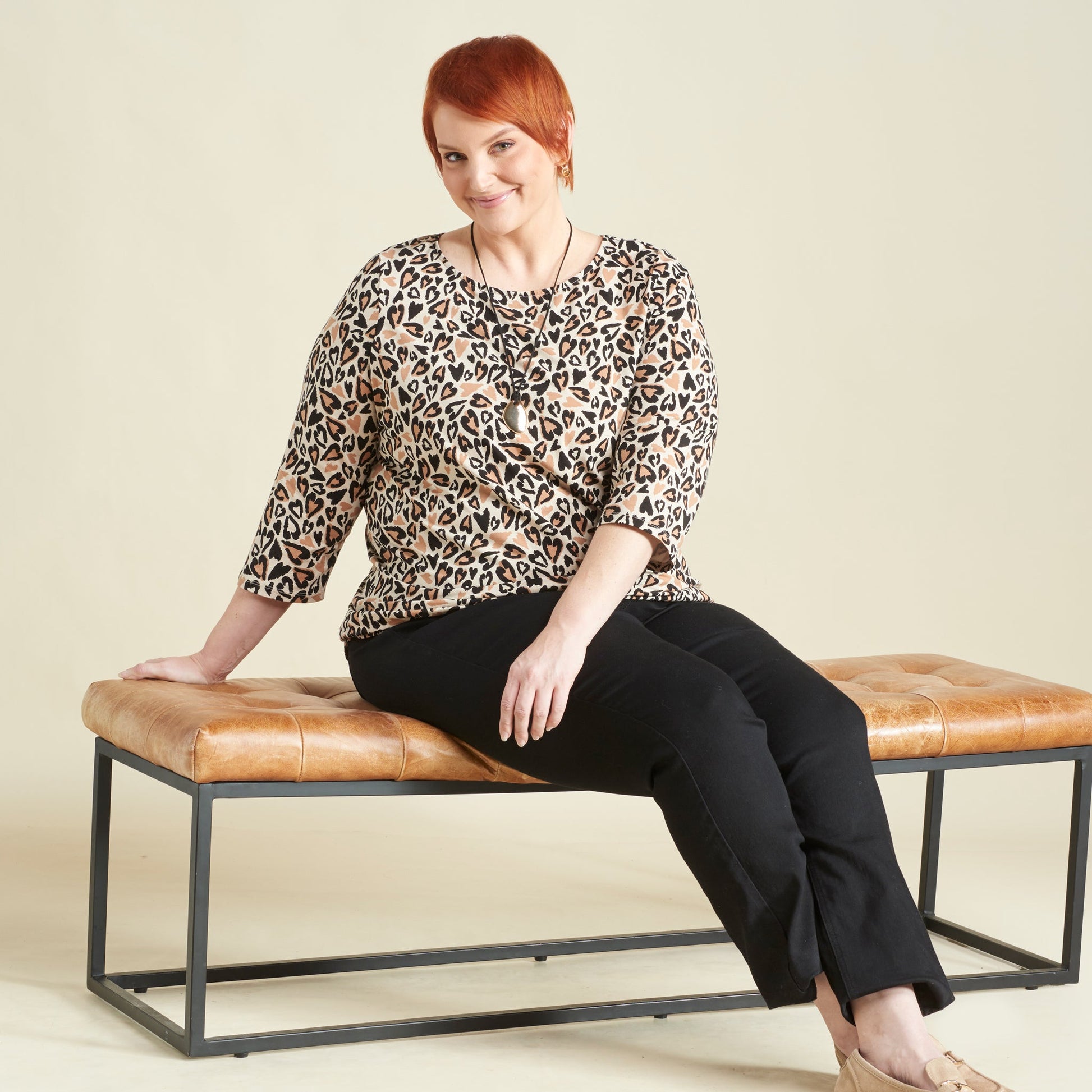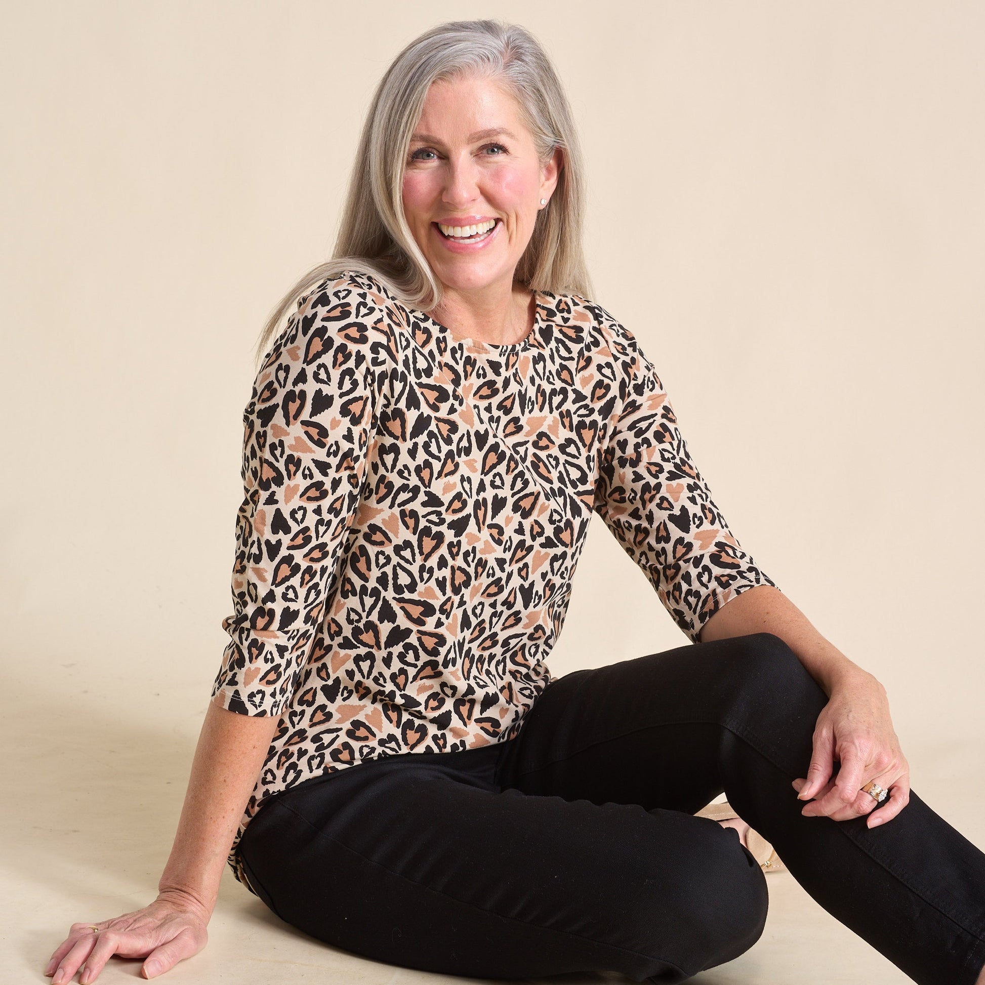 Stand out effortlessly in our exclusive C&B abstract animal print tee, crafted from super-soft fabric that feels as good as it looks. With its sleek boatneck and easy 3/4 sleeves, it layers beautifully and dresses up or down without missing a beat.
