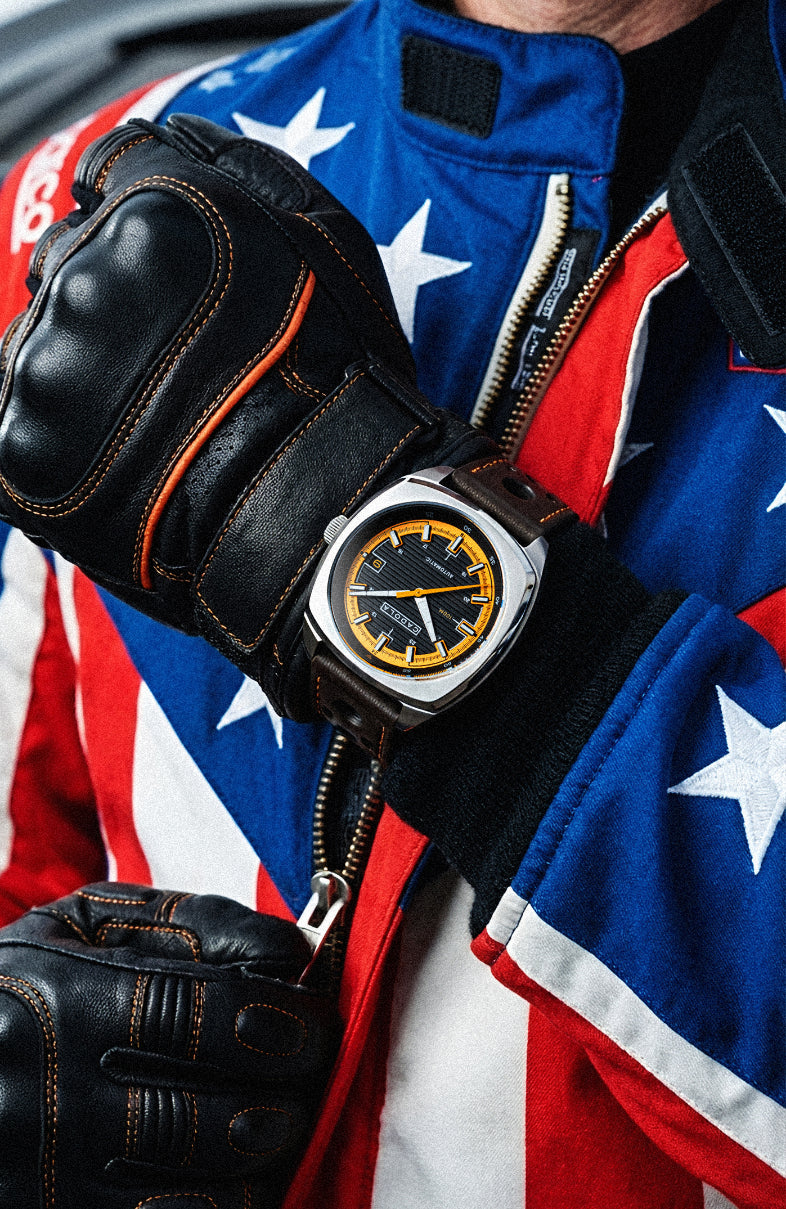 Experience racing of the older days with the Buxton Automatic. With a 38mm stainless steel cushion case, this compact timepiece is powered by a reliable automatic movement. The colour combinations on the dial originate from classic racing cars, adding a touch of vintage hue to your everyday style. This is a sturdy and stylish timepiece that will surely elevate your timekeeping game.