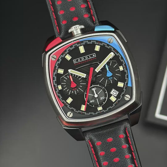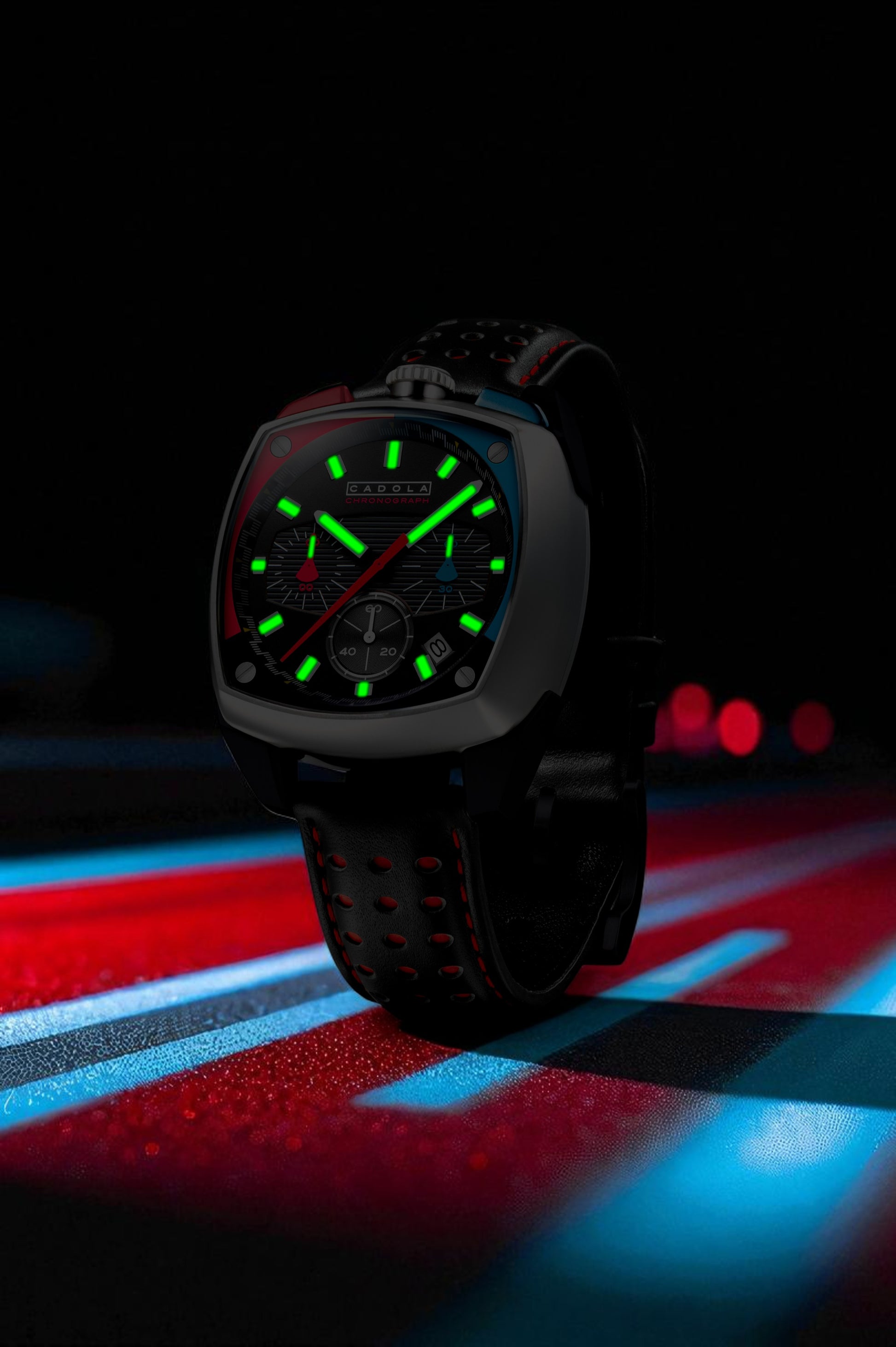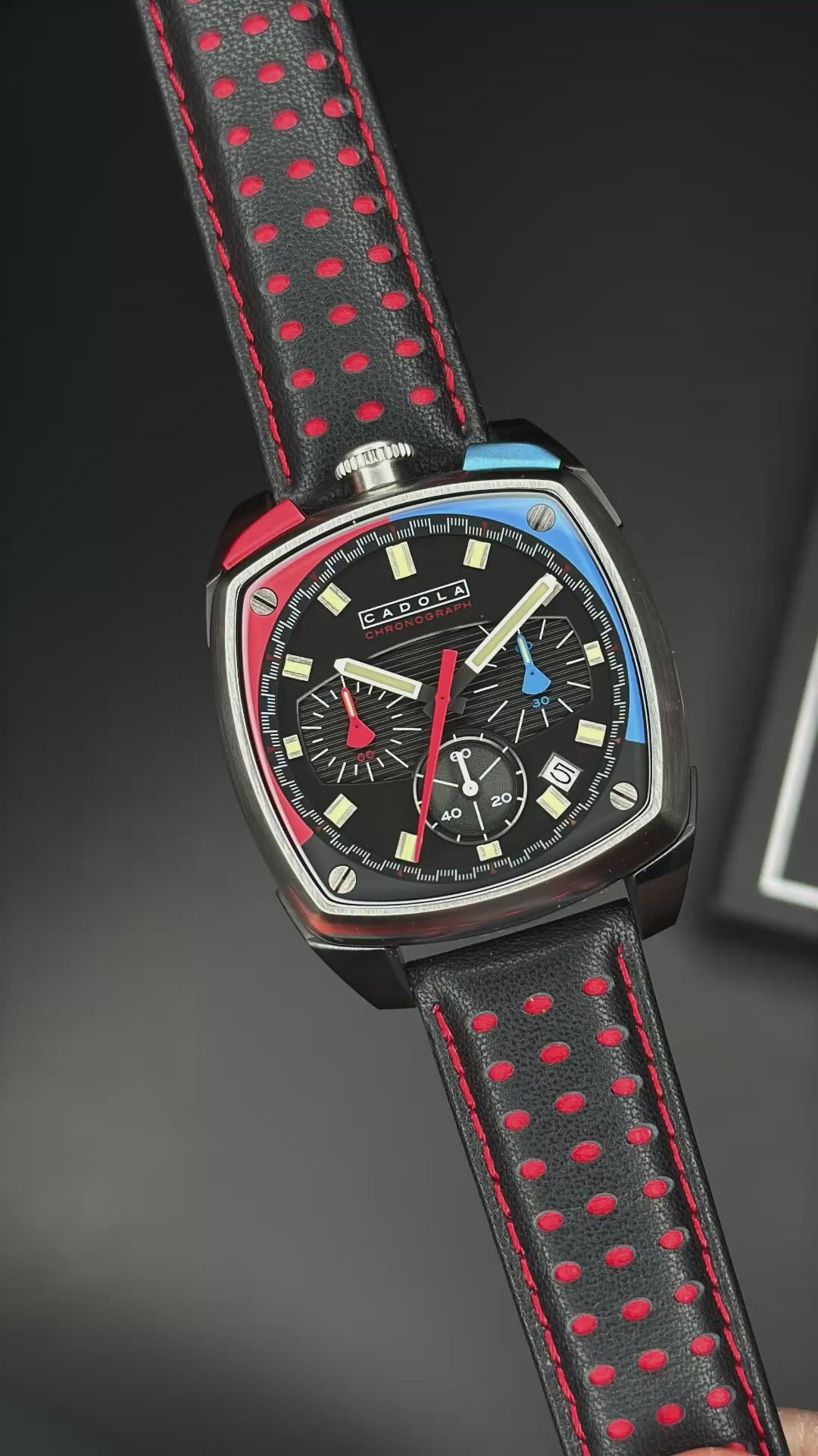 Inspired by vintage racing chronographs and turbocharged for today’s style-savvy drivers, the Taurus Chronograph features a bull-head configuration with aluminium pushers, placing control at the top for intuitive, driver-focused operation. Encased in a 39mm stainless steel square chassis with classic racing colours, the Taurus charges forward with purpose and punch.
