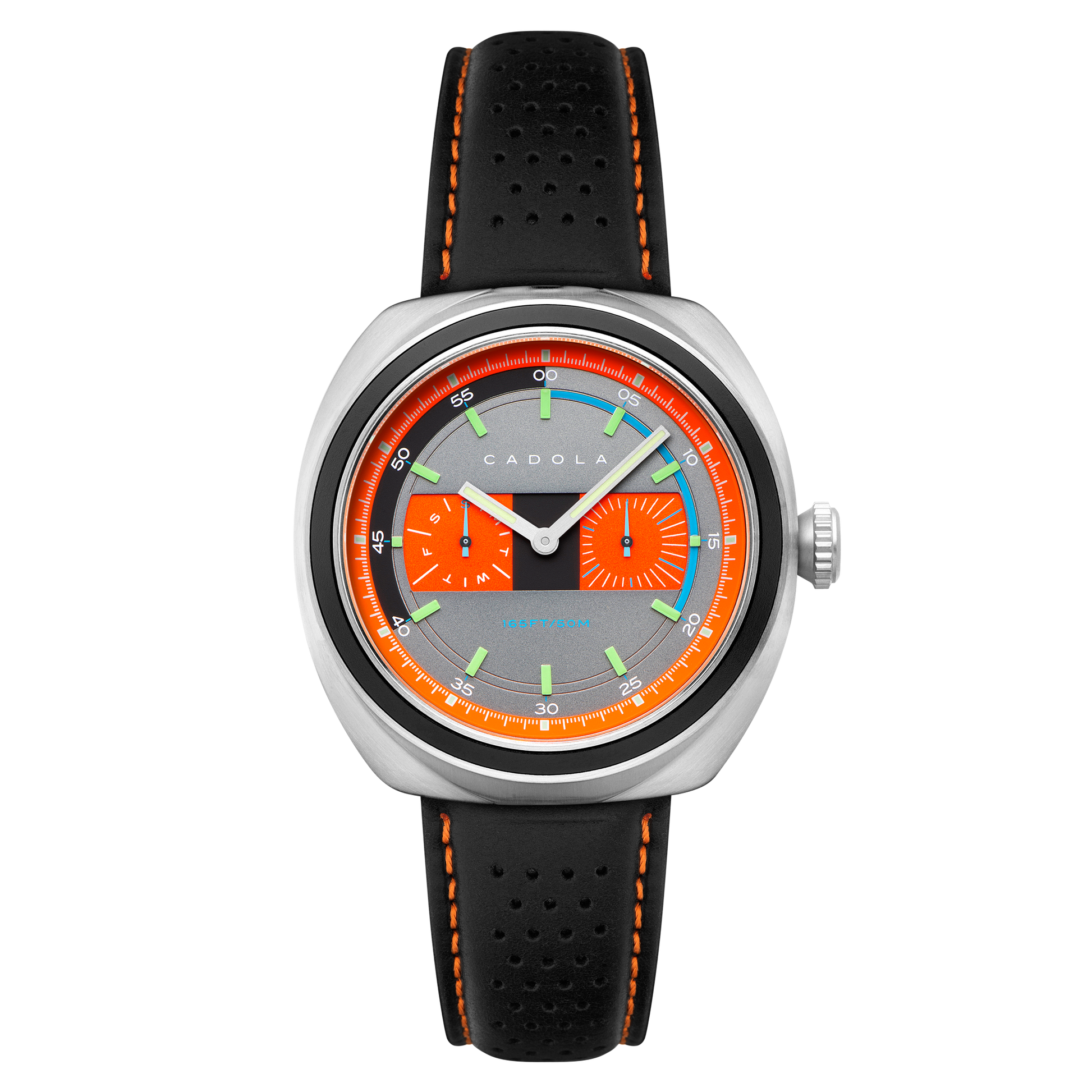 Elevate your timekeeping game with the Giulia Calendar. Featuring a Japan quartz movement with multifunction capabilities, it displays the day and date in a minimal style. The timeless vintage silhouette and colours draw inspiration from mid-20th-century motorsports aesthetics, combining style and practicality. Embrace the charm of a bygone era with this stylish piece.