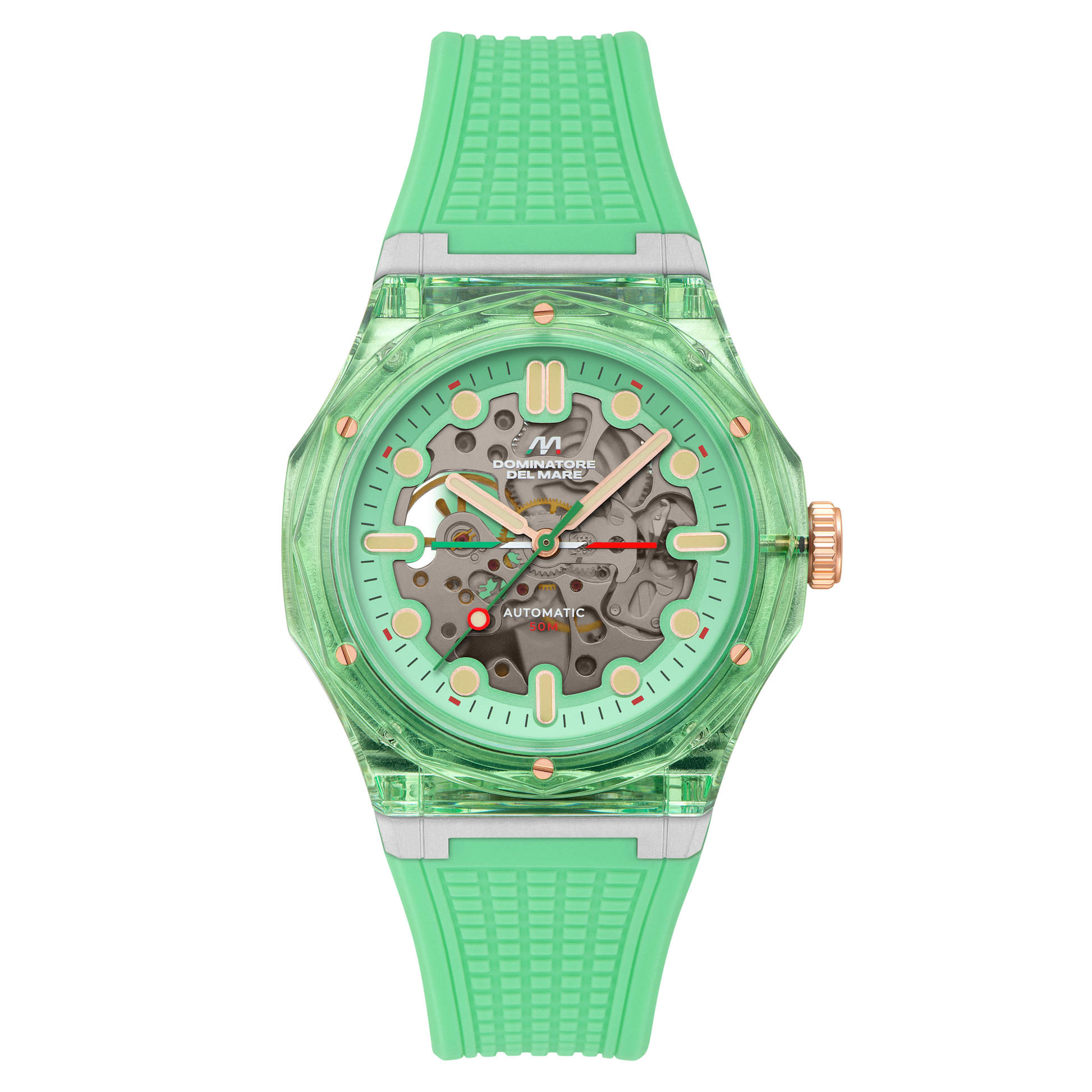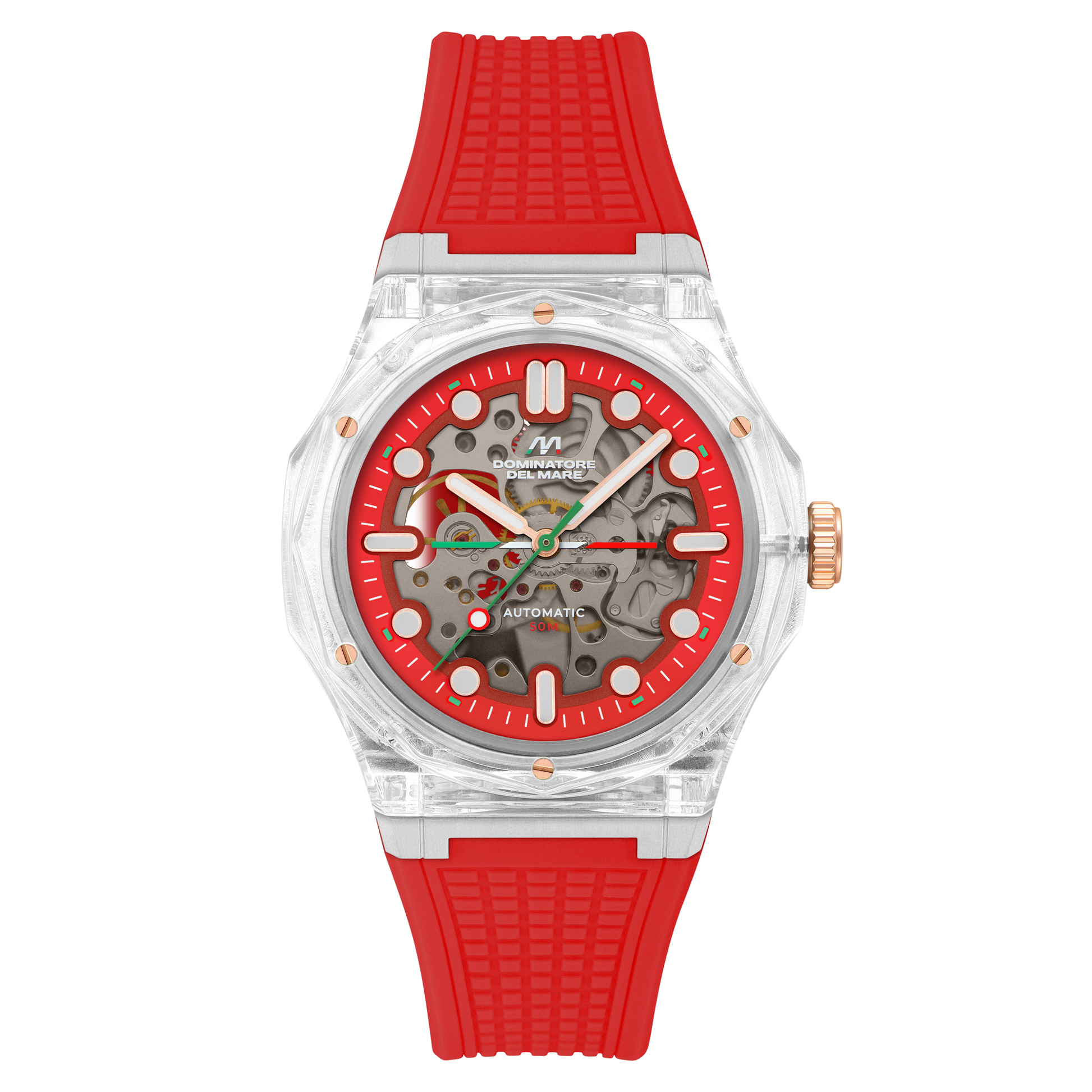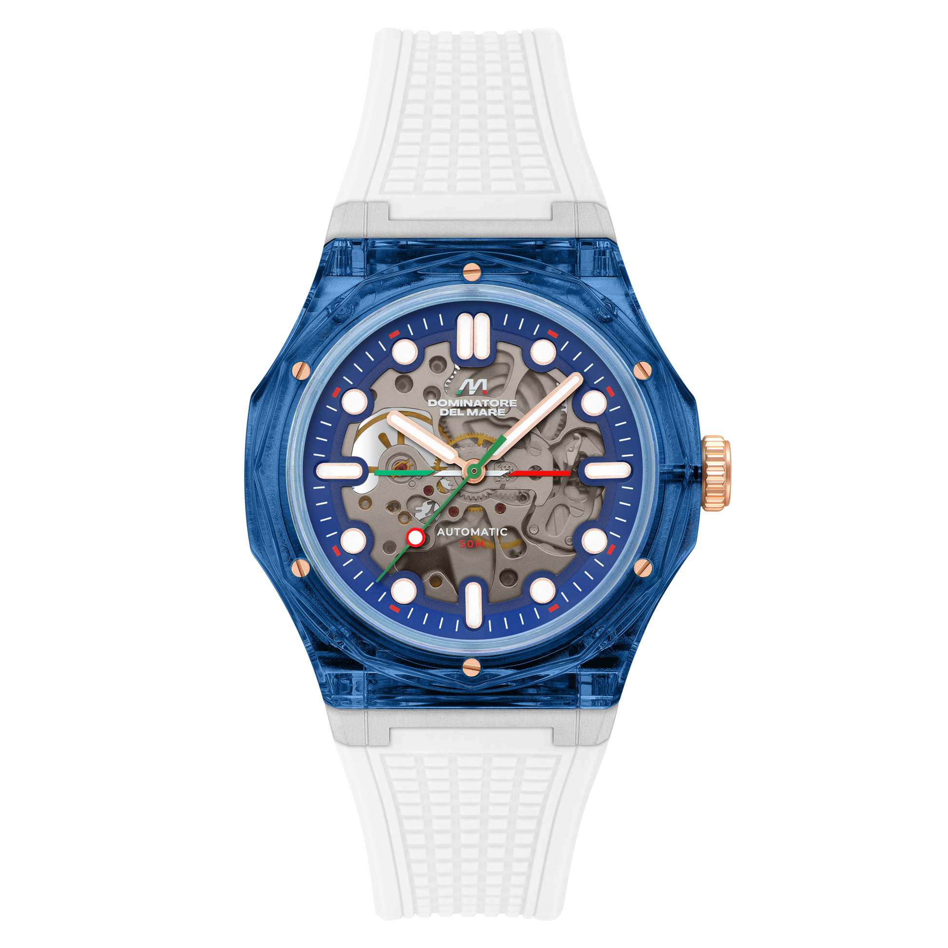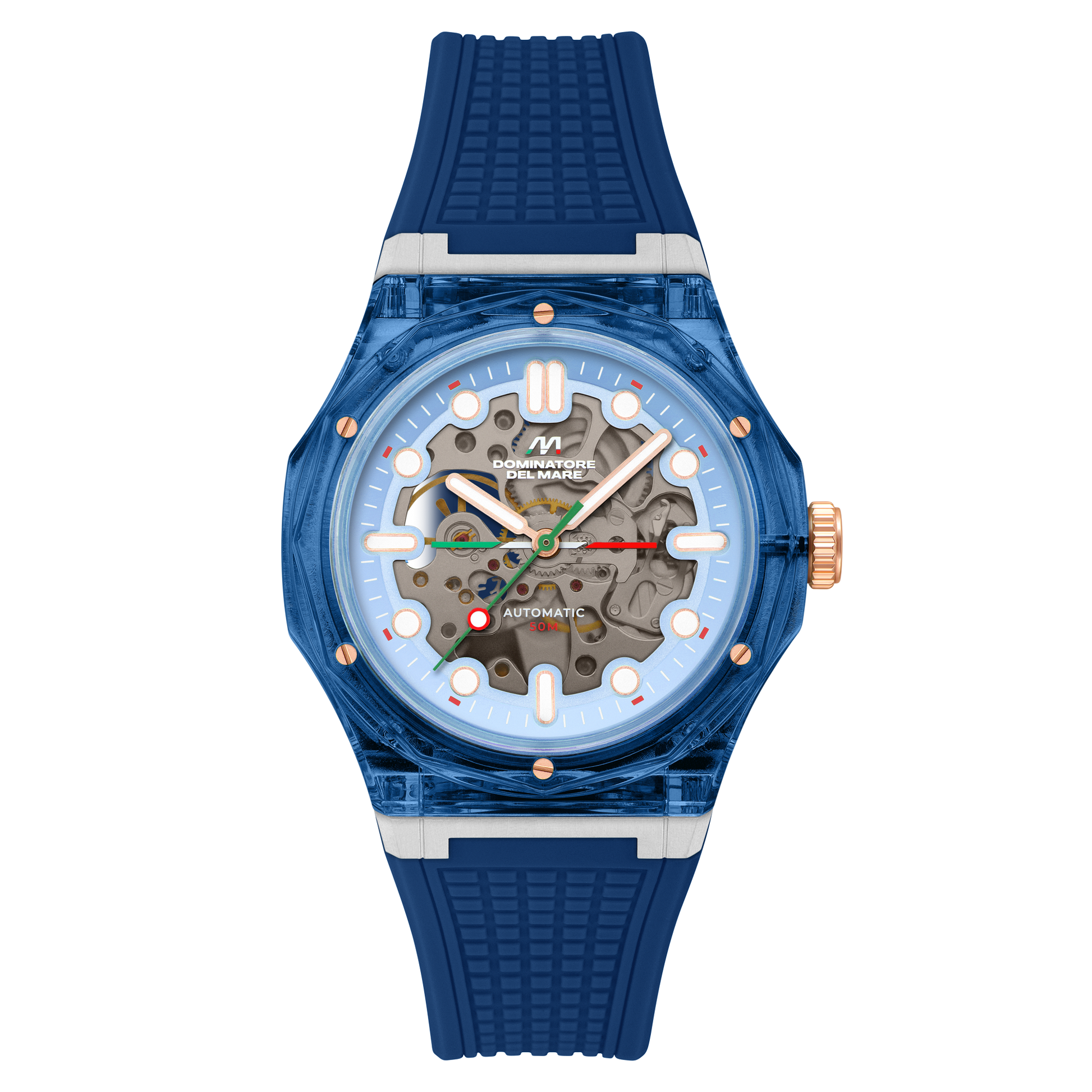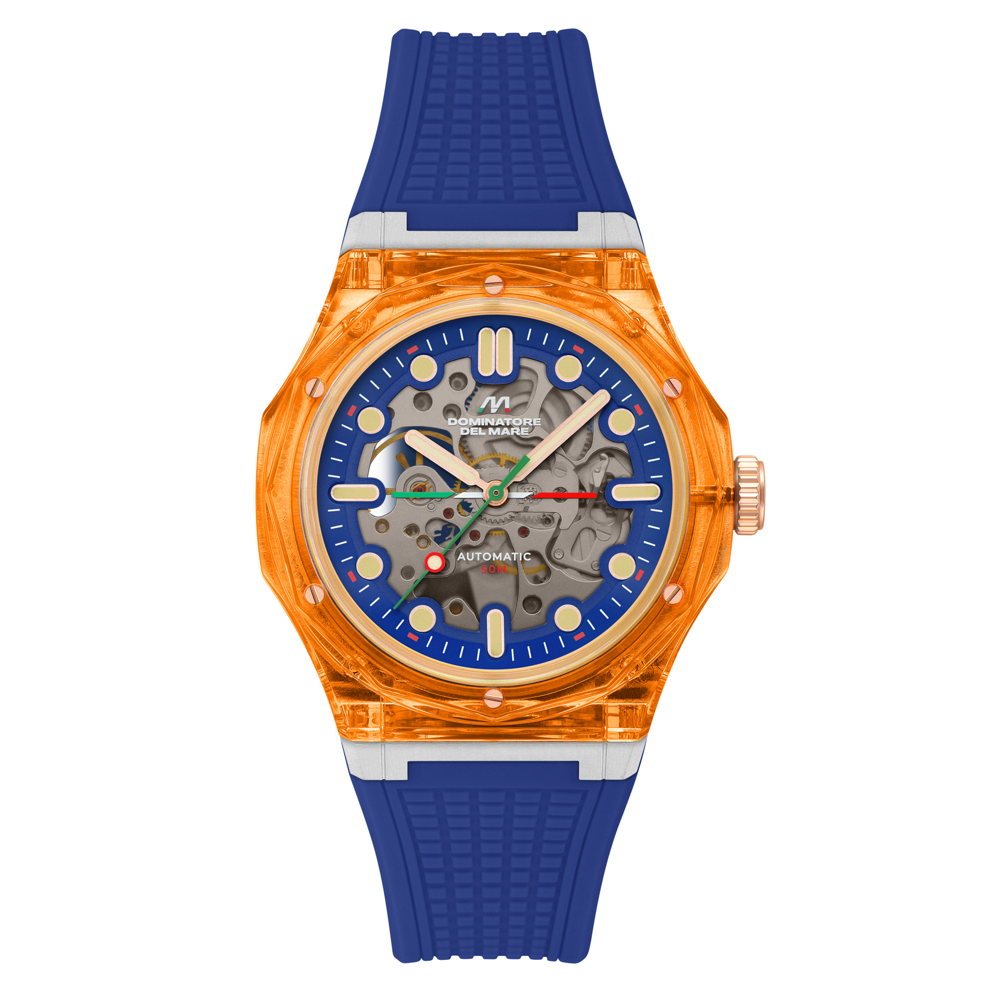 Ravello Automatic is a bold tribute to the natural beauty and vibrant spirit of Ravello, the jewel of the Amalfi Coast. Its intricate skeleton dial reveals the artistry of its automatic movement, while the semi-transparent case captures the glow of Amalfi sunsets and the vibrance of Ravello’s festivals. Like the coastal town, the Ravello Automatic marks a remarkable presence on your wrist.