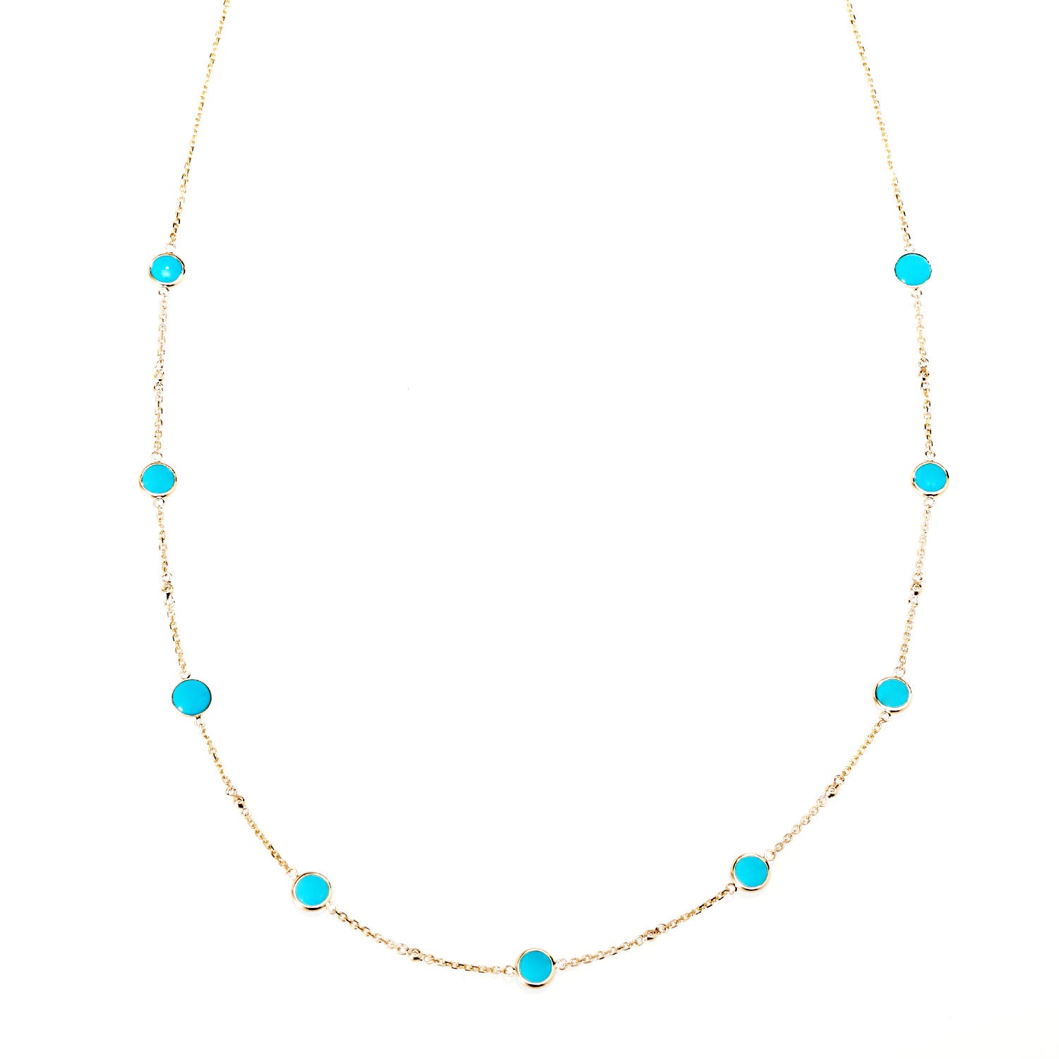 Elevate your style with the EFFY 14K Gold "Turquesa" Necklace, featuring a stunning turquoise and diamond station design on a 24" yellow gold chain. This elegant piece blends vibrant color with sparkling accents, perfect for adding a touch of sophistication to any look. Its generous length allows versatile wear, making it an essential accessory for both everyday elegance and special occasions.