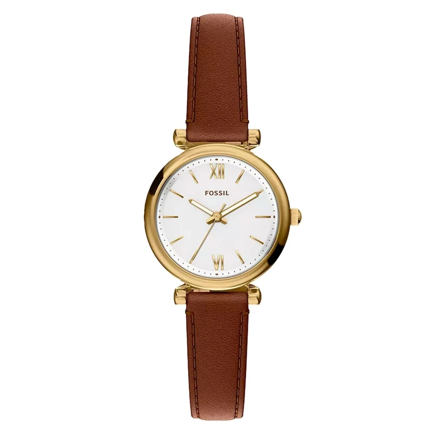 Elegant timekeeping meets everyday style with the Fossil Women's Carlie 28mm Quartz Watch. This refined timepiece features a compact 28mm case paired with a supple leather strap, striking the perfect balance between sophistication and comfort. The quartz movement ensures reliable, accurate timekeeping, while the understated dial design complements any wardrobe. Whether dressing up for special occasions or adding polish to your daily routine, the Carlie delivers classic watchmaking craftsmanship in a size designed for smaller wrists. A timeless accessory that transitions seamlessly from work to weekend.