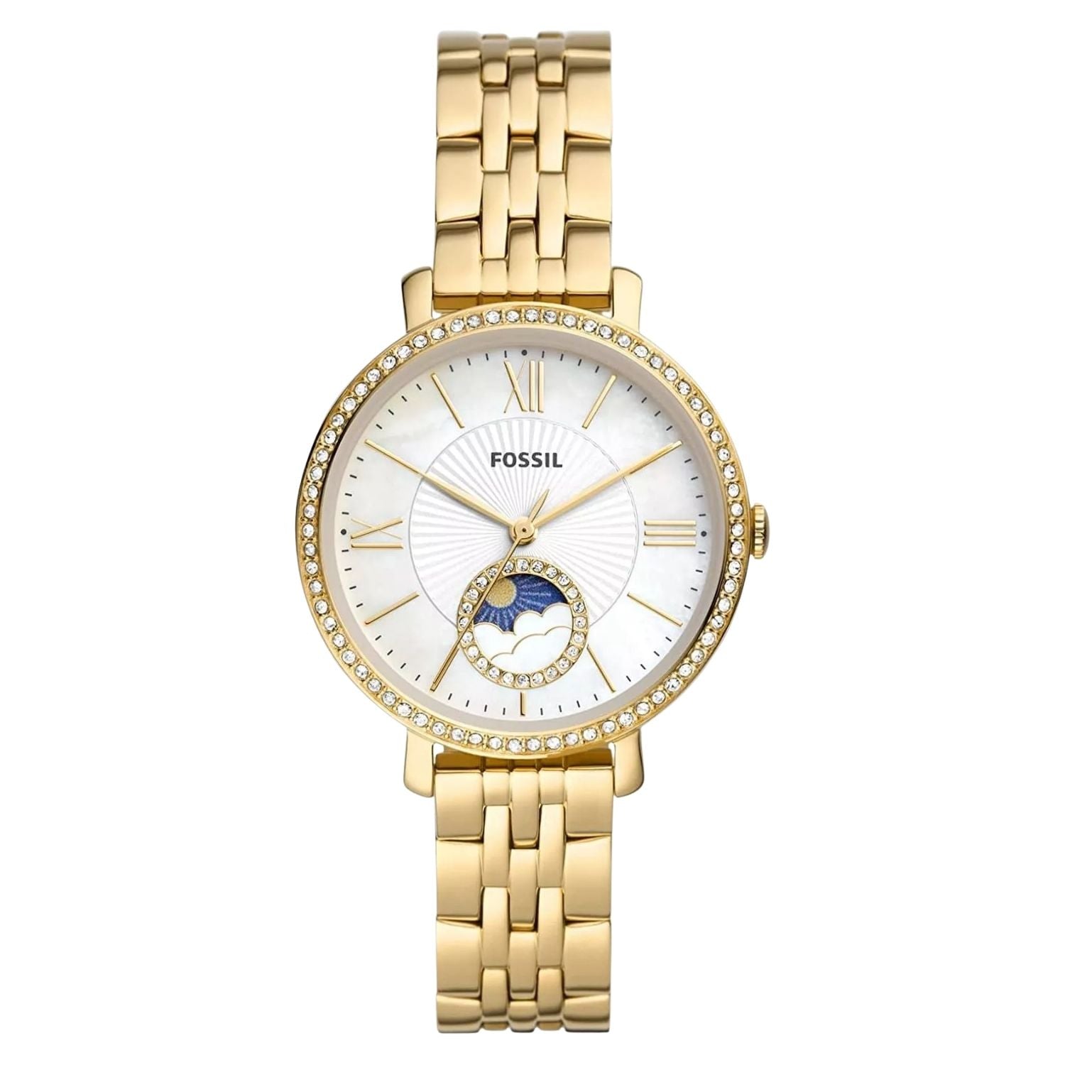 Elevate your everyday style with the Fossil Women's Jacqueline watch, a sophisticated timepiece that combines elegance with functionality. This 36mm quartz watch features a stunning crystal bezel and moonphase complication, adding a touch of celestial charm to your wrist. The polished bracelet band offers comfort and durability, while the precise quartz movement ensures reliable timekeeping. Perfect for both professional settings and casual occasions, the Jacqueline is a versatile accessory that complements any wardrobe. Fossil's commitment to quality craftsmanship makes this watch a timeless investment piece.
