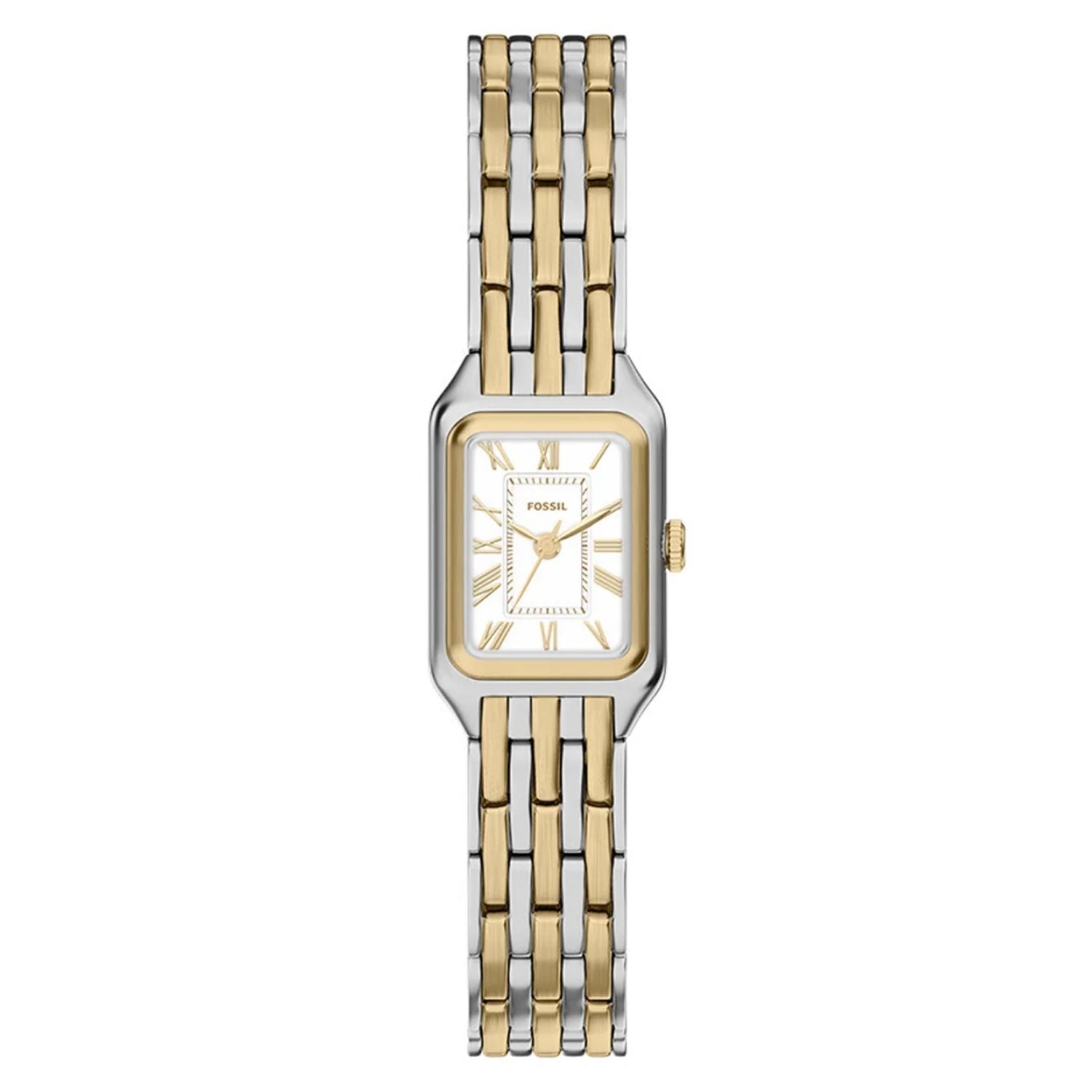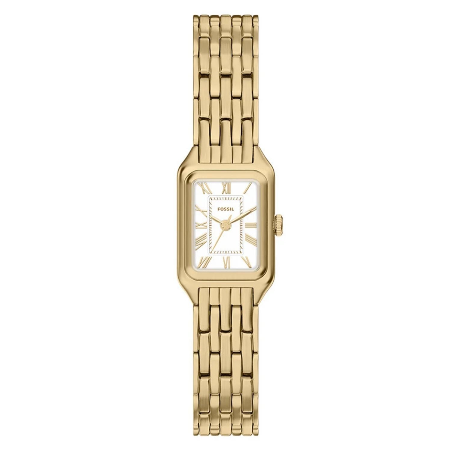 Elevate your everyday style with the Fossil Women's Raquel watch. This sophisticated timepiece features a rectangular face with elegant Roman numeral markers and a sleek 18mm case. The quartz movement ensures reliable, accurate timekeeping, while the polished bracelet band offers a refined finish that transitions seamlessly from office to evening. A timeless design that complements any wardrobe and makes an understated statement of elegance.