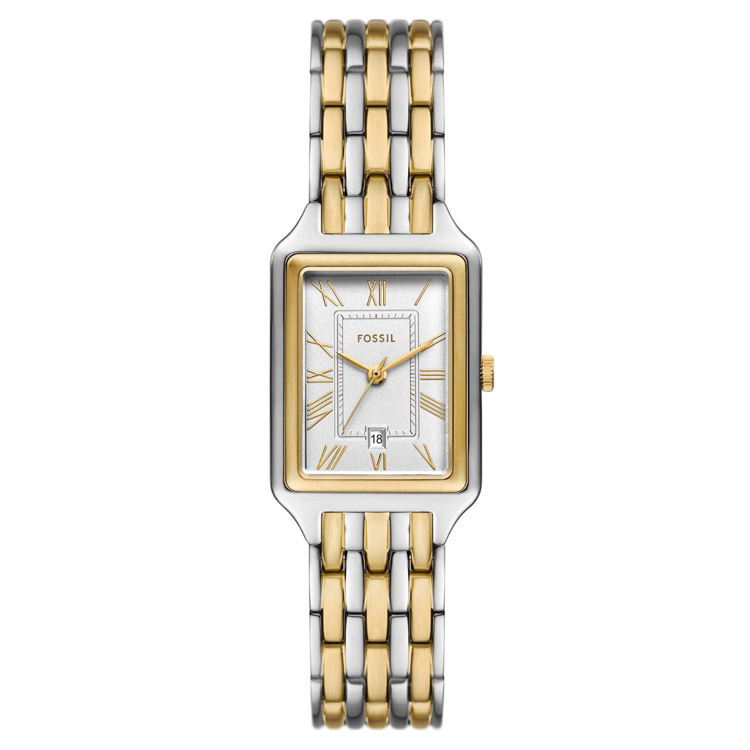 Elevate your everyday style with the Fossil Women's Raquel watch. This sophisticated timepiece features a 23mm case in elegant two-tone stainless steel, combining warm rose gold with classic silver for a versatile look that transitions seamlessly from day to night. The quartz movement ensures reliable, accurate timekeeping, while the date window keeps you organized at a glance. The matching two-tone bracelet offers a comfortable fit with secure closure, making it an ideal accessory for work, weekend outings, or special occasions. With its refined design and quality craftsmanship, the Raquel watch is a timeless addition to any jewelry collection—perfect for gifting or treating yourself to a piece that complements any wardrobe.