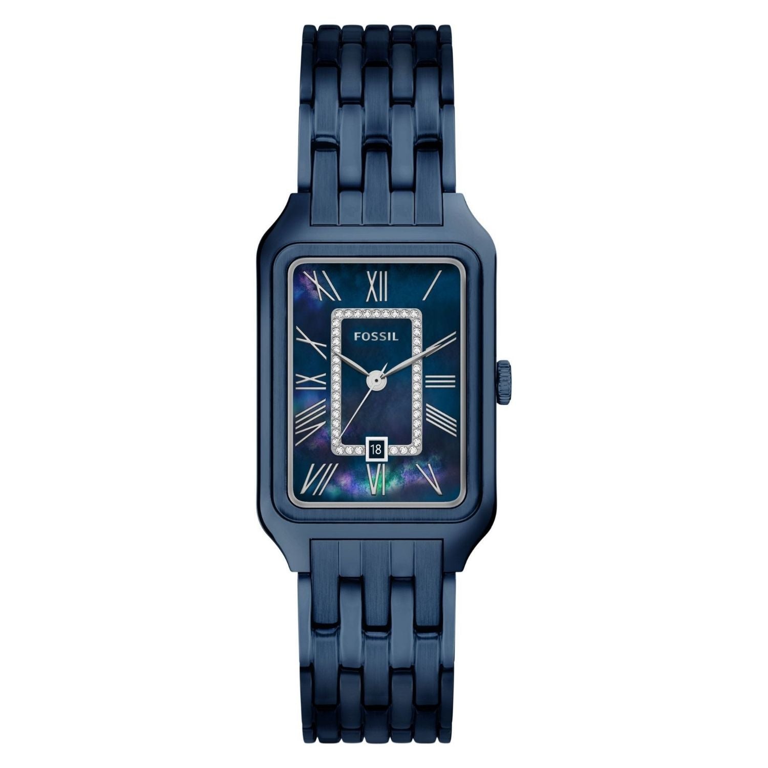Elevate your everyday style with the Fossil Women's Raquel watch. This 26mm timepiece features a sleek monochromatic blue design that transitions seamlessly from office to weekend. The quartz movement ensures reliable timekeeping, while the date window keeps you organized at a glance. The matching blue bracelet offers a cohesive, polished look that complements any wardrobe. Durable and sophisticated, the Raquel is the perfect accessory for the modern woman who values both function and fashion.