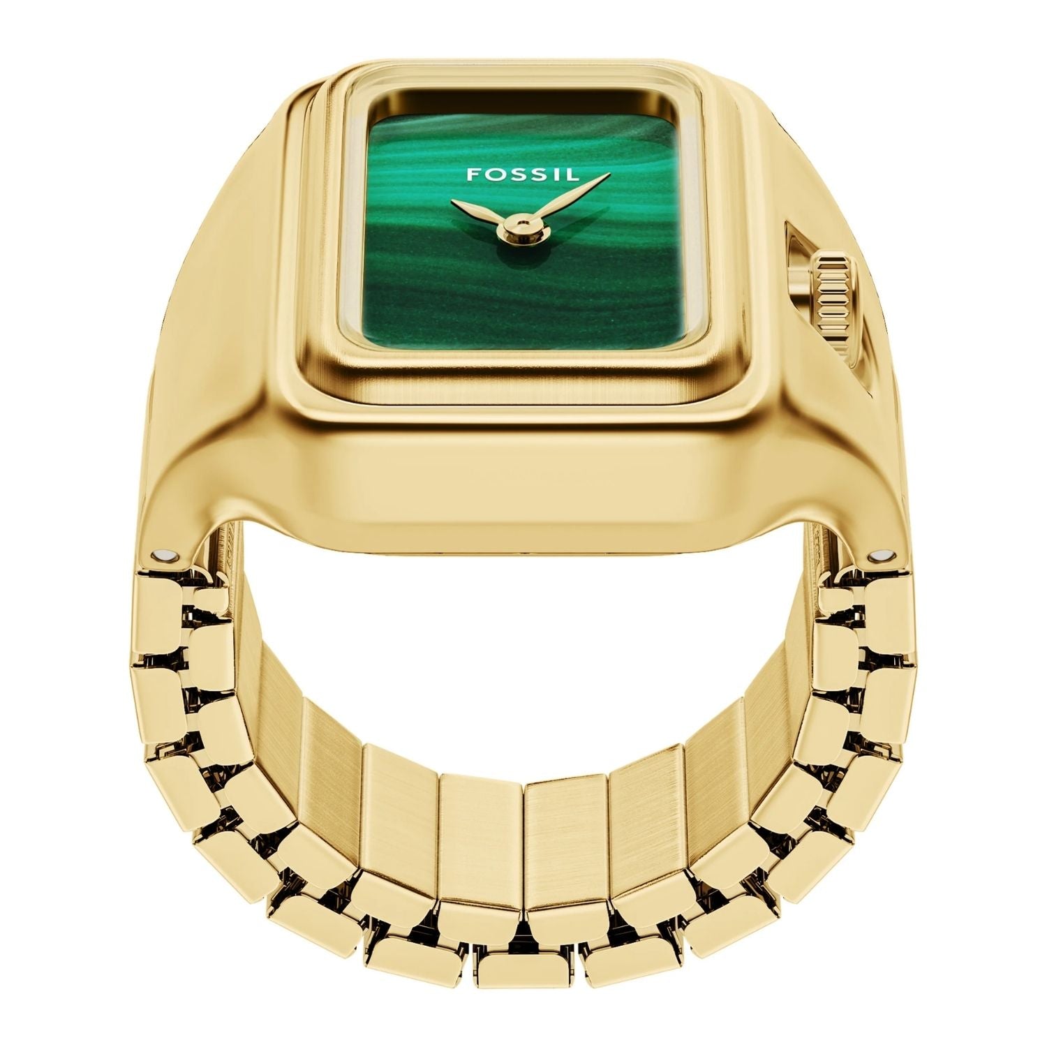 Elevate your everyday style with the Fossil Women's Raquel Mini ring watch. This petite timepiece features a striking malachite dial that brings natural beauty to your wrist. The 14mm quartz movement ensures reliable, accurate timekeeping, while the sleek ring design offers a modern twist on classic watchmaking. Perfect for those who prefer delicate, understated elegance. Water-resistant and built to last, this watch pairs effortlessly with any outfit—from casual to sophisticated.