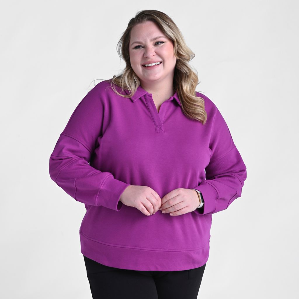 Embrace laid-back luxury with our French Terry Oversized Collared Sweatshirt, blending comfort and style in an on-trend varsity-inspired silhouette. With unique fabric mixing and ribbed French Terry sleeves, it’s available in two vibrant spring colors, perfect for adding a touch of relaxed elegance to your seasonal wardrobe.