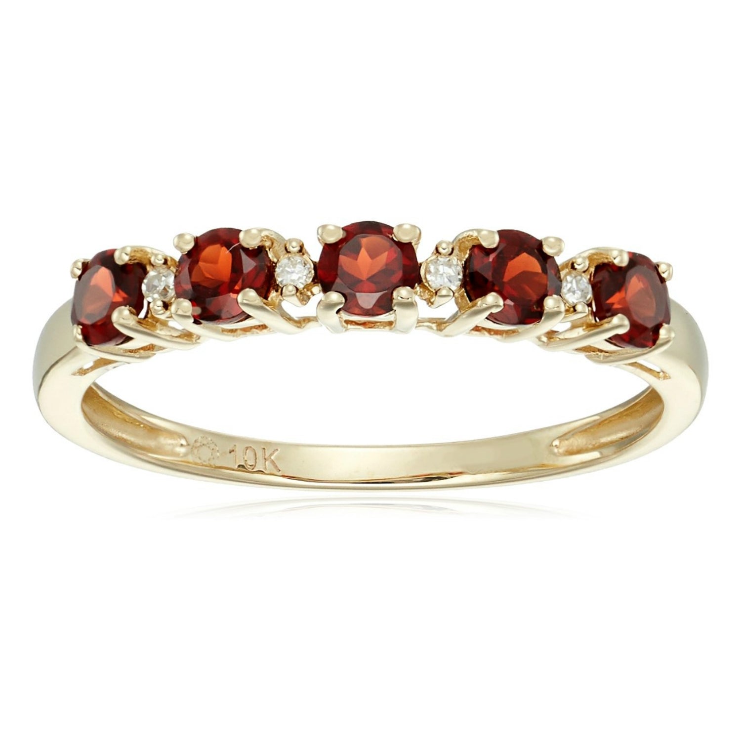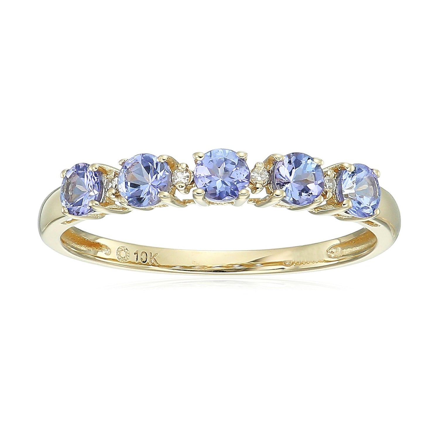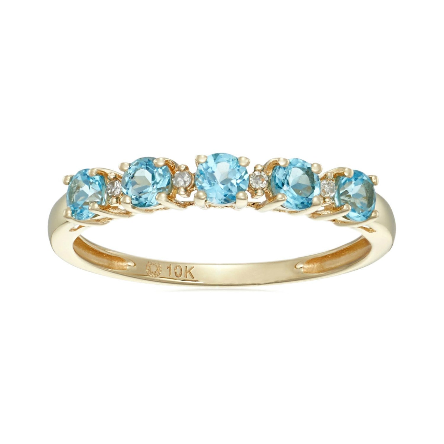 Gilded Lane 10K Gold 5-Stone Gem & Diamond Accent Band Ring