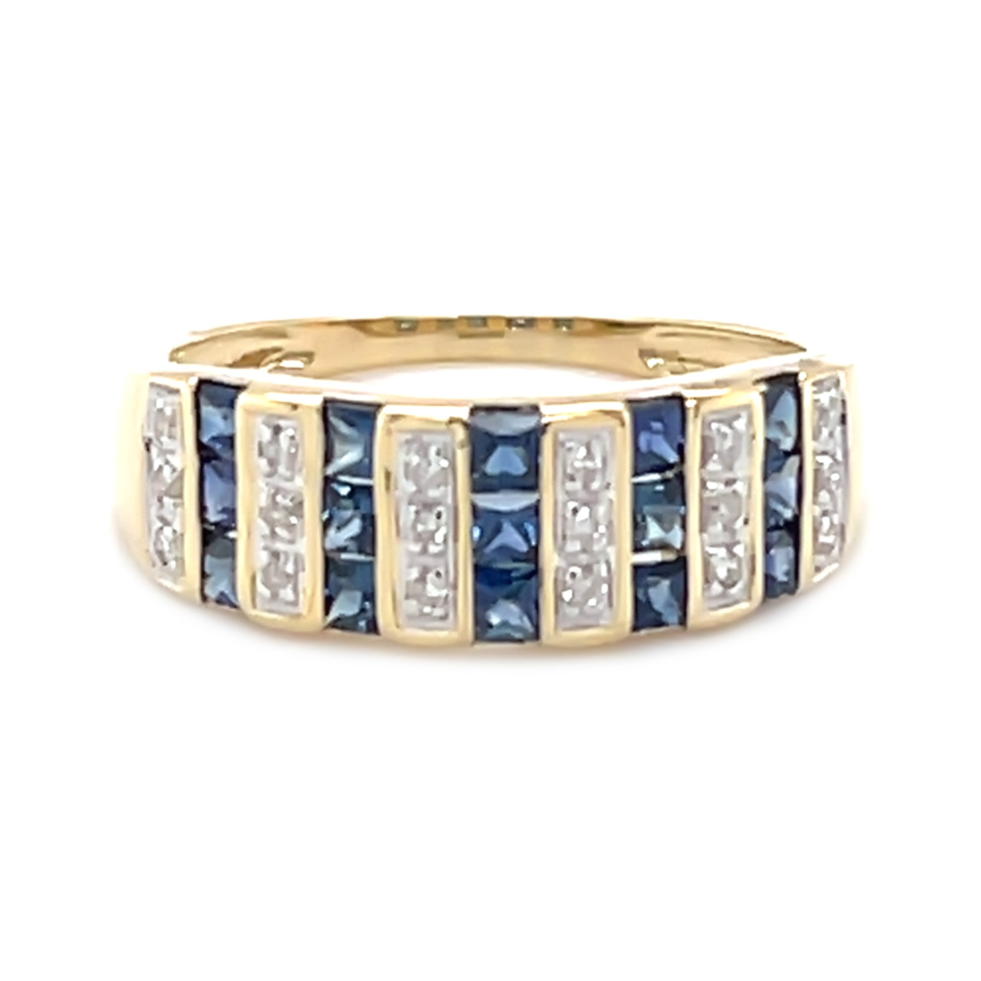 Elevate your jewelry collection with this sophisticated triple-row ring from Gilded Lane, expertly crafted in 14K gold. The design features a harmonious blend of precious gemstones and diamonds arranged across three graceful rows, creating dimensional sparkle and refined elegance. Each stone is carefully selected and set to maximize brilliance while maintaining the integrity of the gold setting. This versatile piece transitions seamlessly from everyday wear to special occasions, offering timeless appeal with contemporary design sensibility. A distinguished addition to any fine jewelry wardrobe.