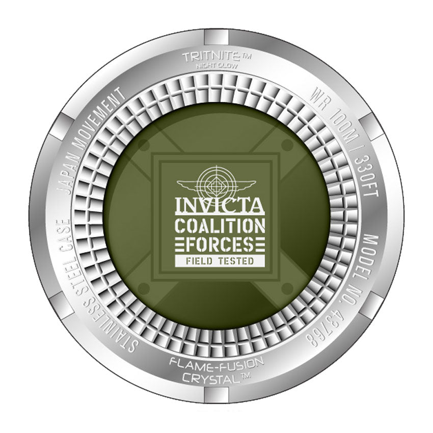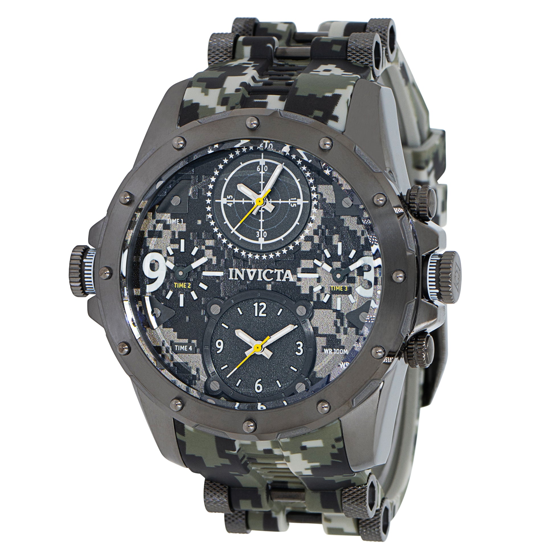 Invicta Men's 50mm Coalition Forces Quartz Multi-Time Camo Silicone Strap Watch features a bold 50mm case with striking camouflage design, perfect for those who appreciate tactical style. The reliable quartz movement keeps accurate time, while the multi-time zone functionality lets you track multiple time zones simultaneously—ideal for travelers and global communicators. The durable silicone strap offers comfort and flexibility for everyday wear and active pursuits. With its rugged aesthetic and practical features, this timepiece combines functionality with contemporary military-inspired design for the modern man.