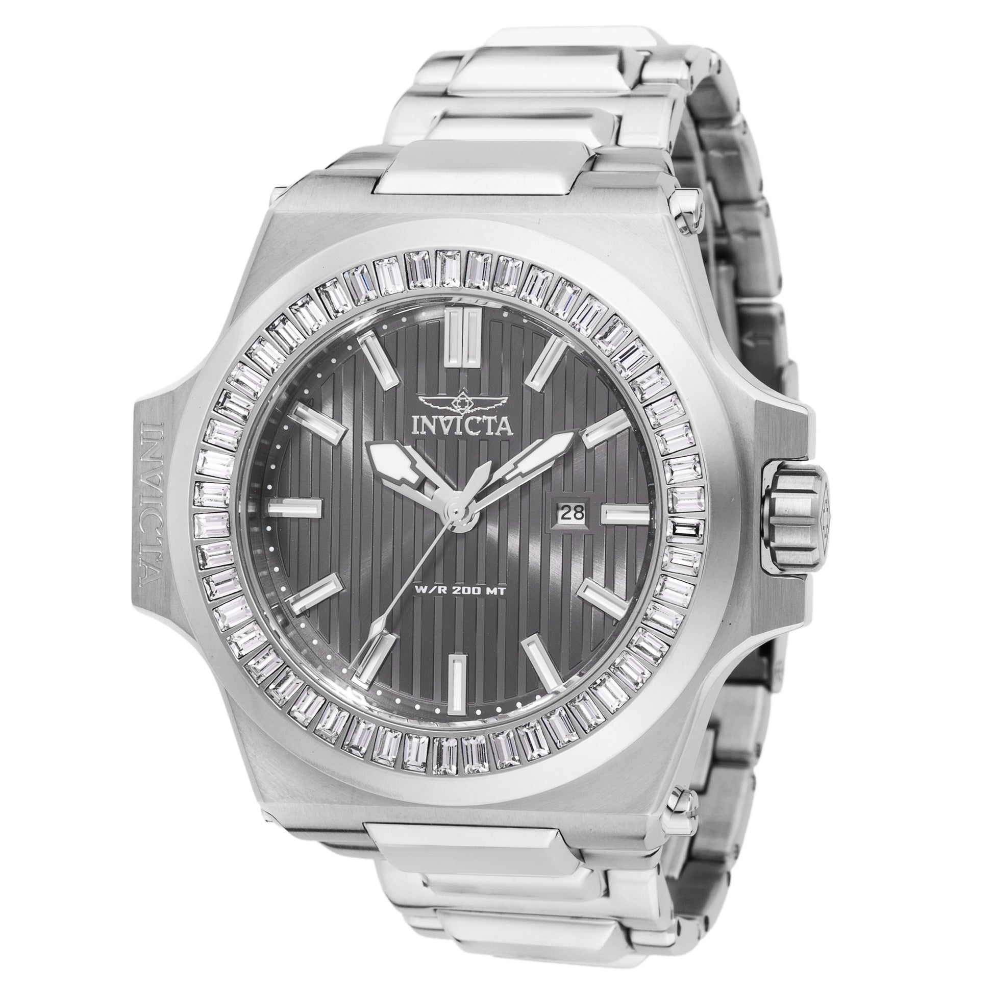 The Invicta Men's Akula commands attention with its bold 58mm case and distinctive striped dial design. Powered by reliable quartz movement, this timepiece delivers precision and dependability for everyday wear. Crystal accents catch the light beautifully, adding refined elegance to the dial. The matching bracelet combines comfort with durability, while the substantial case size makes a confident statement on the wrist. A sophisticated choice for men who appreciate striking design paired with solid watchmaking craftsmanship.