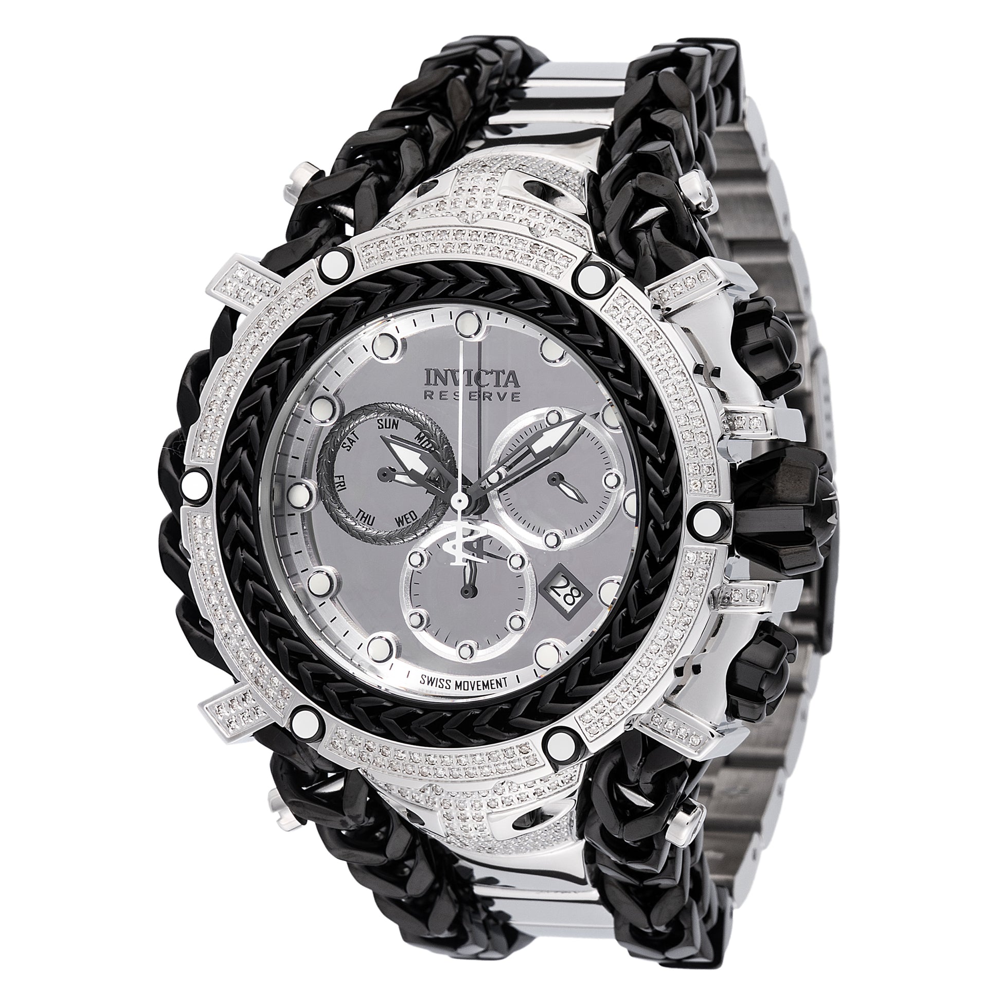 The Invicta Men's 58mm Gladiator commands attention with its bold design and precision engineering. Featuring authentic Swiss quartz movement, this timepiece delivers reliable accuracy for everyday wear and special occasions alike. The substantial 58mm case houses 1.74 carats of genuine diamonds, creating a striking visual impact that catches light from every angle. Built for durability, this watch combines luxury aesthetics with functional performance, making it an investment piece that transcends seasonal trends. The Gladiator's commanding presence on the wrist reflects both confidence and refined taste.