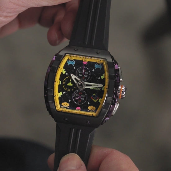 To commemorate one of the most important video game titles of all time, Nubeo Watches in conjunction with TAITO collaborates to introduce a series of limited edition timepieces that bring the seminal video game to life. Showcasing remarkable detailing, flair and precision - each watch is a truly wearable, stunning timepiece.