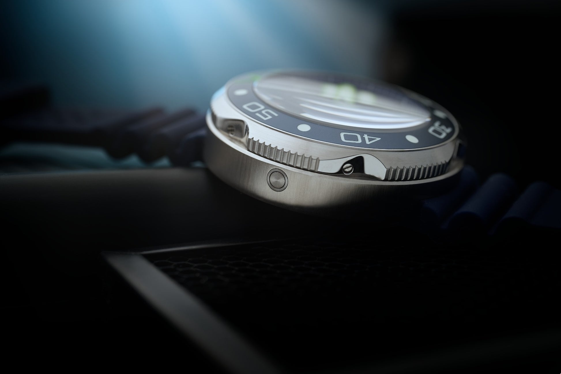 A new iteration of the best-selling Ventana collection. The multilayered dial features a semi-transparent plate, giving wearers a glimpse of the Japanese automatic movement beneath. Featuring an impressive 100 ATM water resistance and encased in a sapphire lens for maximum durability, this design pays homage to the submersible’s innovation while delivering a sophisticated style.