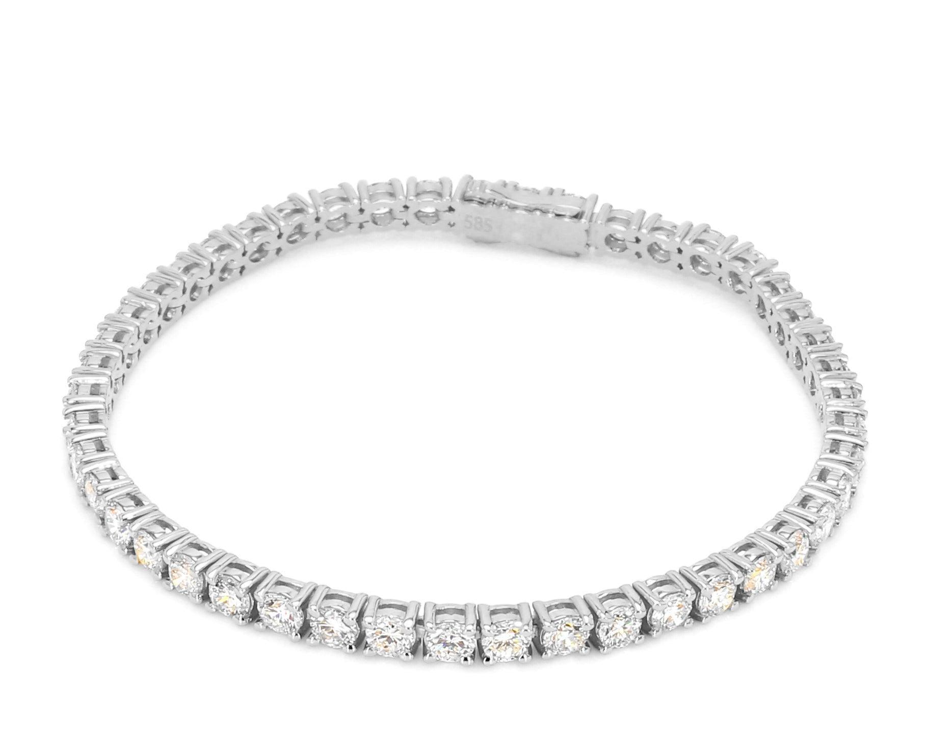 Elevate your everyday elegance with this stunning 14K gold tennis bracelet, featuring brilliant round lab-grown diamonds that sparkle with authentic radiance. Each stone is expertly set in a continuous line of lustrous gold, creating a timeless piece that catches light from every angle. Lab-grown diamonds offer exceptional quality and clarity at a more accessible price point, without compromising on beauty or durability. The 7-inch length provides a comfortable, versatile fit perfect for any occasion—from casual outings to special events. This bracelet combines sophisticated design with responsible luxury, making it an investment piece you'll treasure for years to come.