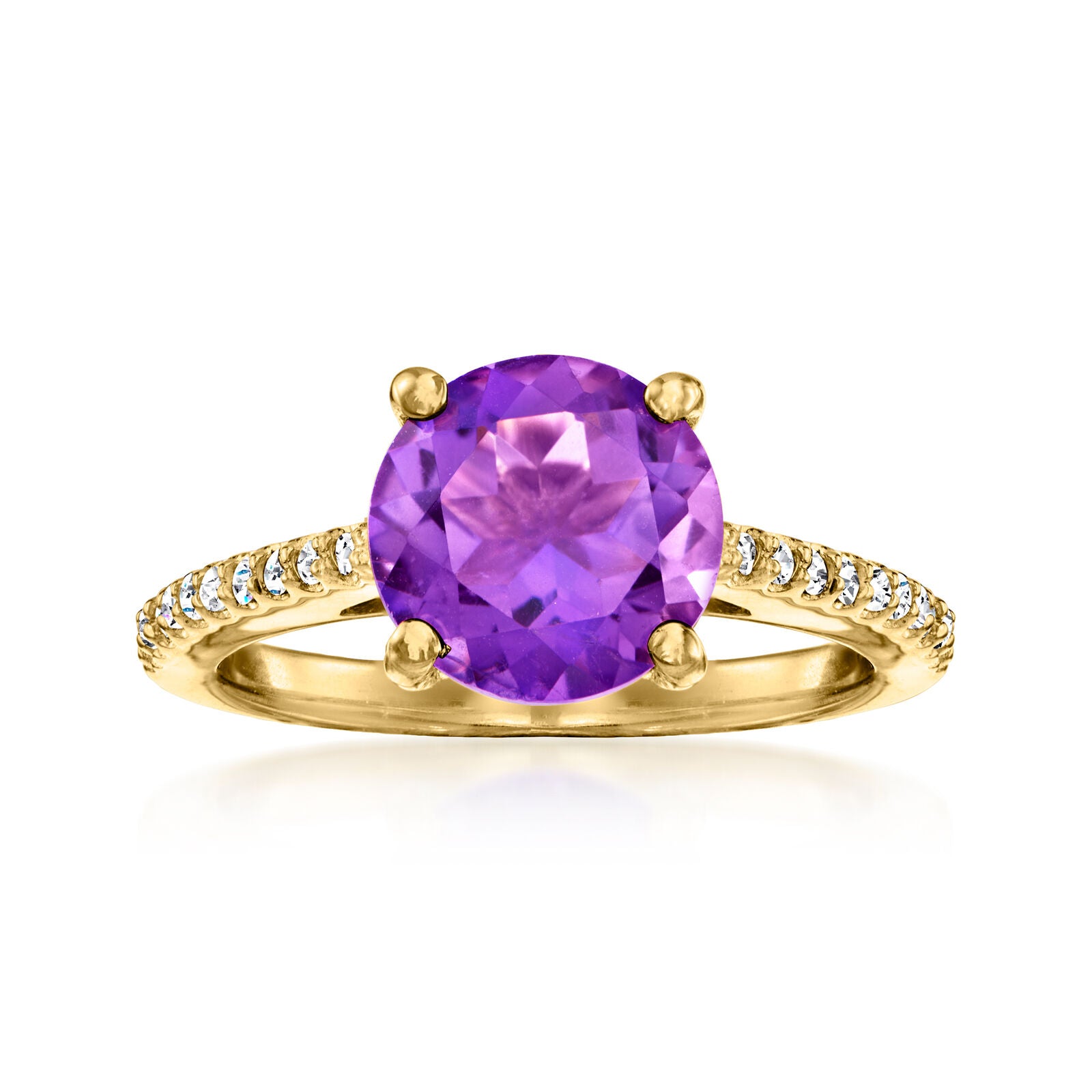Elevate your jewelry collection with this stunning Pinctore solitaire ring, featuring a radiant 9mm Brazilian amethyst set in lustrous 18K gold plating. The deep, mesmerizing purple hue of authentic Brazilian amethyst brings timeless elegance to any occasion, from everyday wear to special events. The classic solitaire design showcases the gemstone's natural beauty while the premium gold plating ensures lasting brilliance and durability. A refined choice for those who appreciate quality craftsmanship and sophisticated style.