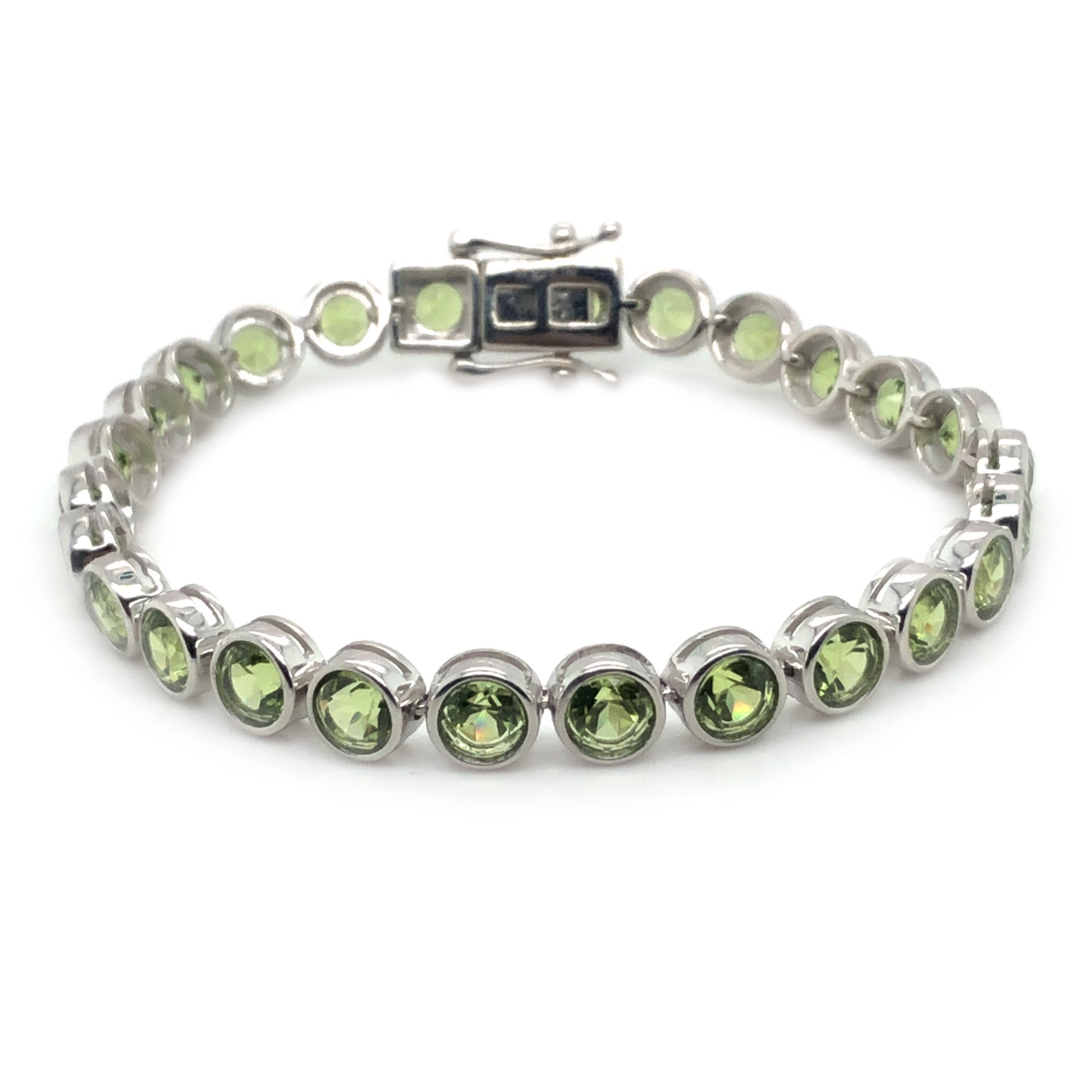 Elevate your everyday elegance with this refined sterling silver bracelet, featuring a continuous line of lustrous 5mm gemstones set in protective bezels. Each stone is carefully positioned to create a seamless flow of color and light along your wrist. The bezel setting not only showcases the gemstones beautifully but also provides secure, durable protection for lasting wear. Perfect for layering or wearing solo, this timeless piece transitions effortlessly from day to evening, adding a touch of understated sophistication to any ensemble.