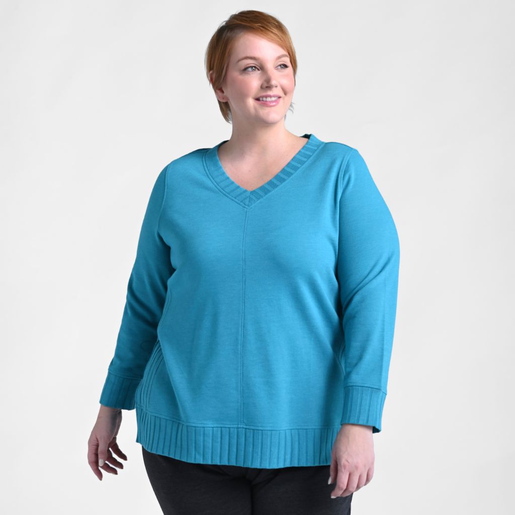 Christopher & Banks Relaxed Restyled Rib Trim V Neck Top