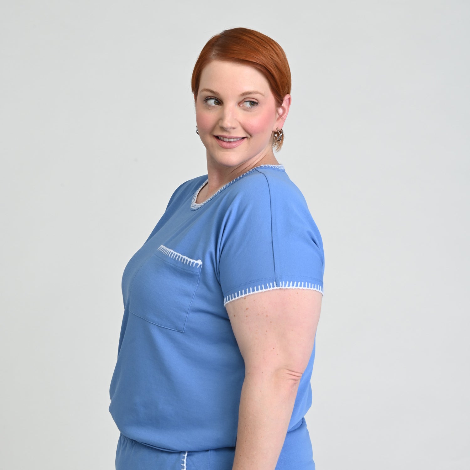 Our Relaxed Restyled Whip Stitch Dolman Sleeve Tee adds a handcrafted touch to your everyday look with on-trend whip stitch detailing at the neckline, pocket, and sleeves. With its easy dolman fit and laid-back charm, it’s the perfect blend of comfort and style.