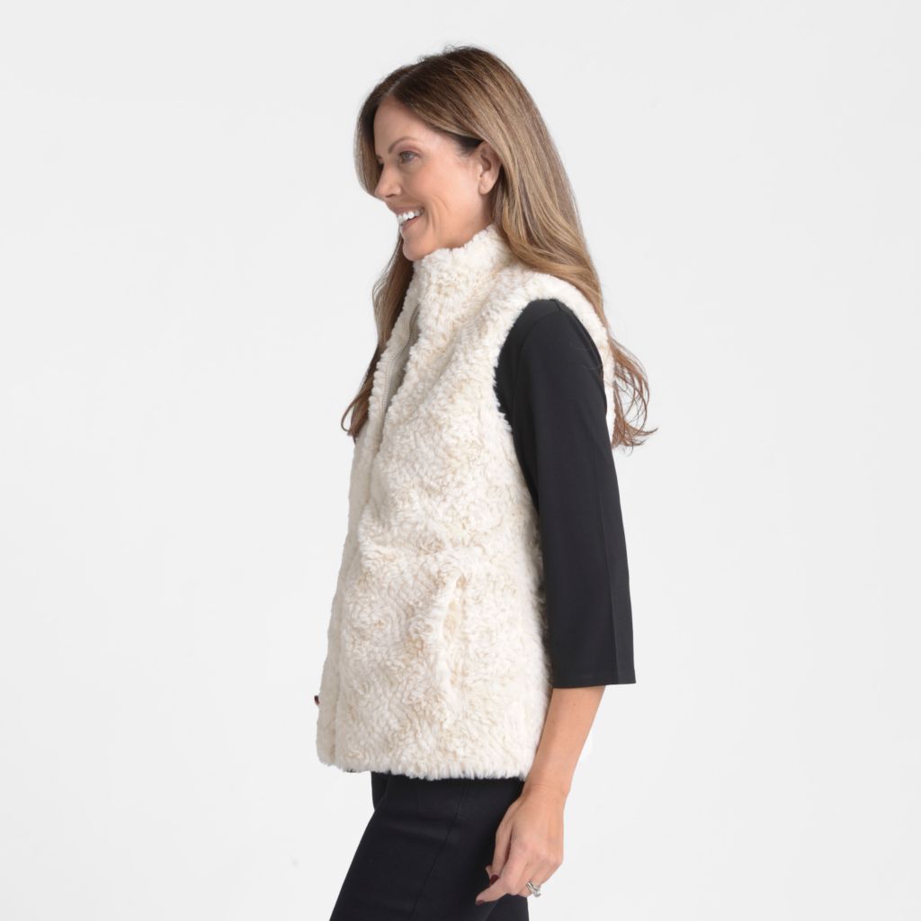 Stay cozy and stylish with our Reversible Fuzzy Zip Front Vest, offering two chic looks in one featuring a soft fur side and a sleek quilted design. Perfect for any occasion, its versatile, tag-free construction and warm fiber fill ensure comfort and fashion, whether you're dressing up or down.