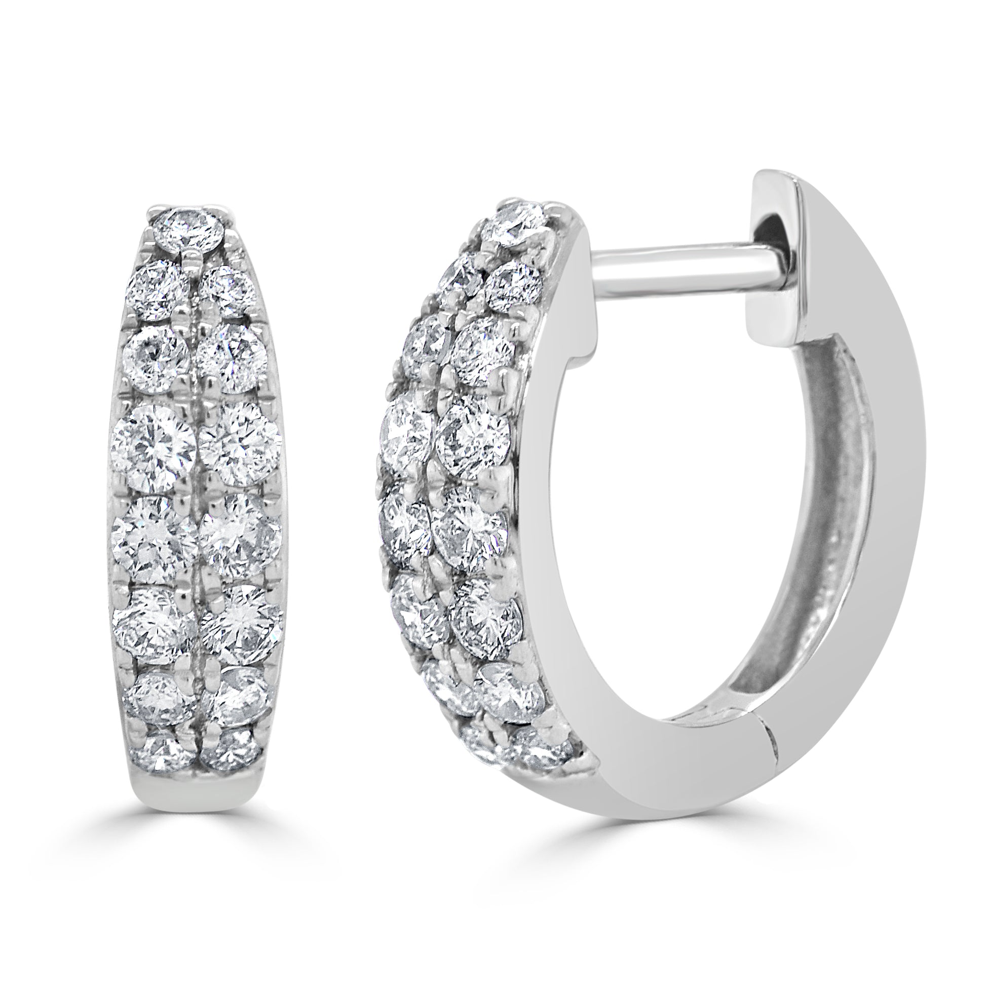 Elevate your everyday elegance with these exquisite 14K gold huggie hoop earrings from Sabrina Designs. Featuring 0.37 carats of sparkling diamonds arranged in a sophisticated double-row design, these earrings offer refined luxury in a wearable silhouette. The secure huggie style sits close to the ear for comfort and security, while the brilliant diamond setting catches light beautifully throughout the day. Choose between timeless yellow gold or contemporary white gold to complement your personal style. Perfect for layering or wearing solo, these versatile pieces transition seamlessly from office to evening occasions.