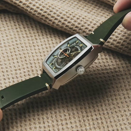 The Thomas Earnshaw Wellington exemplifies refined horological craftsmanship with its distinctive skeletonized dial, revealing the intricate mechanical movement beneath. This 40mm tonneau case strikes an elegant balance between presence and wearability, while the automatic mechanism ensures reliable timekeeping through kinetic energy. The exposed escapement and gear work showcase the precision engineering that defines mechanical watchmaking. Finished with a quality strap, this timepiece appeals to collectors who appreciate both aesthetic sophistication and technical excellence. A versatile addition to any discerning watch enthusiast's collection.