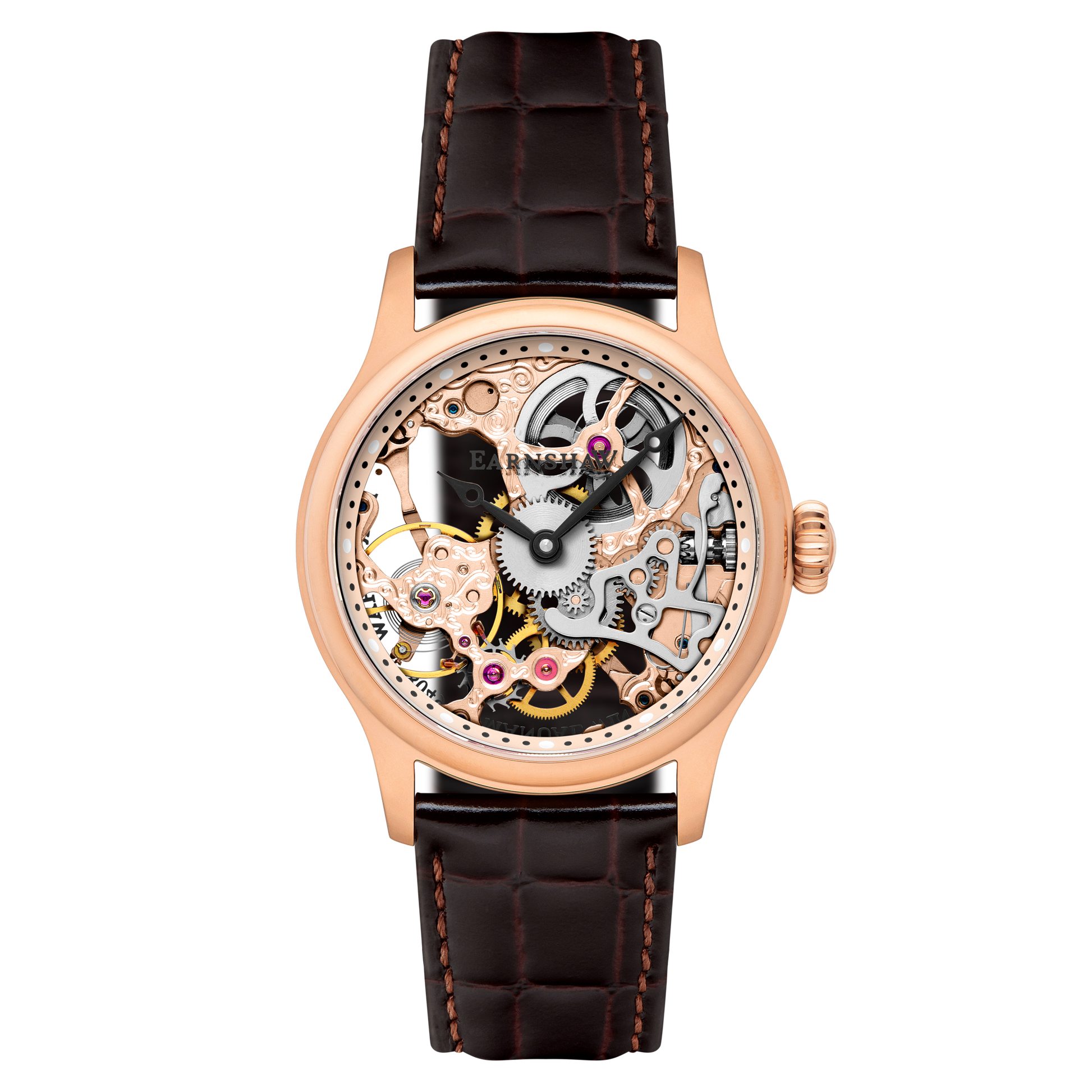The Thomas Earnshaw Bauer exemplifies horological craftsmanship with its 42mm skeletonized mechanical movement, offering an unobstructed view of the intricate gear work and escapement. The exposed dial reveals the precision engineering that powers this timepiece, while the robust strap ensures reliable daily wear. Engineered for those who appreciate mechanical watchmaking, this model combines technical sophistication with understated elegance, delivering both functional accuracy and aesthetic intrigue for the discerning collector.