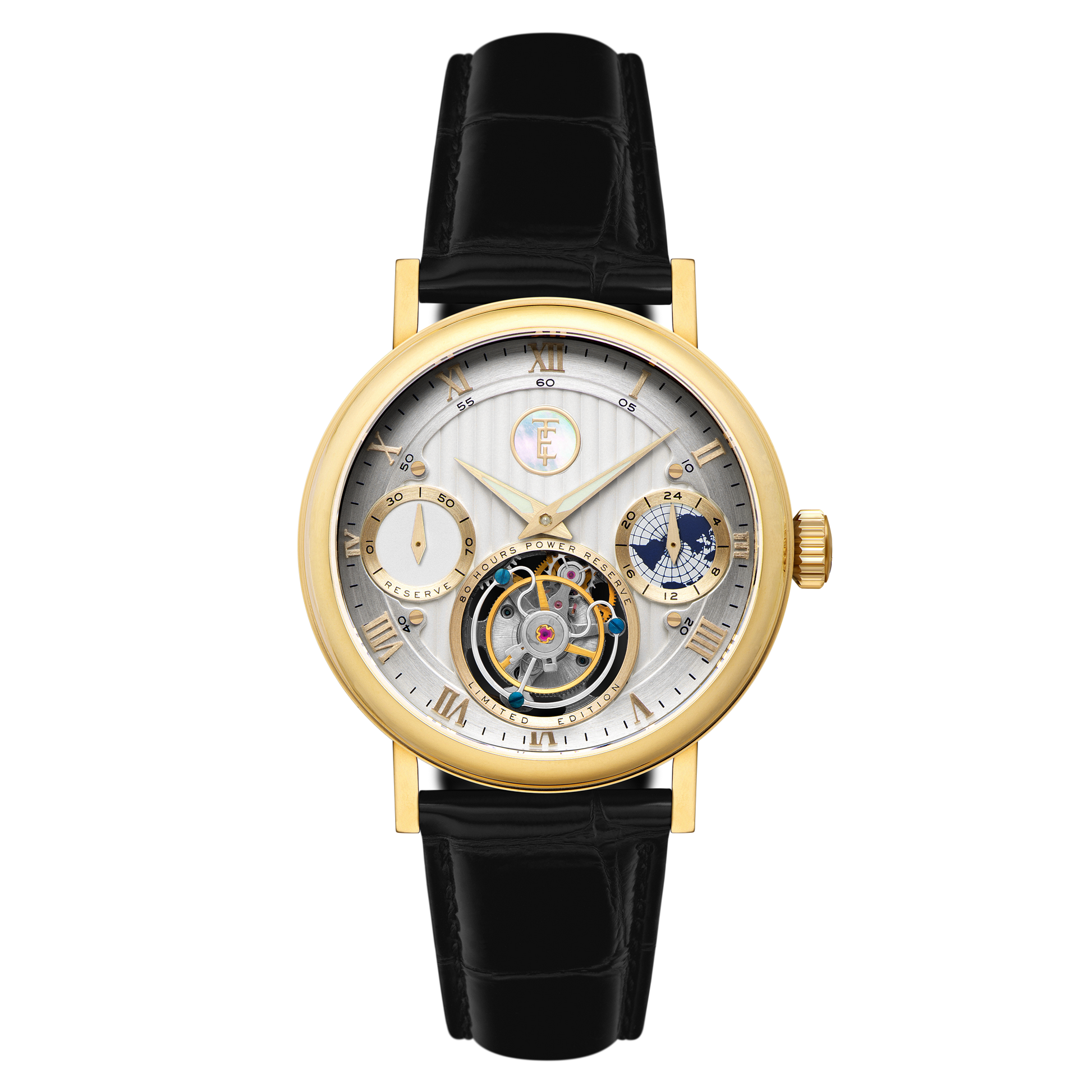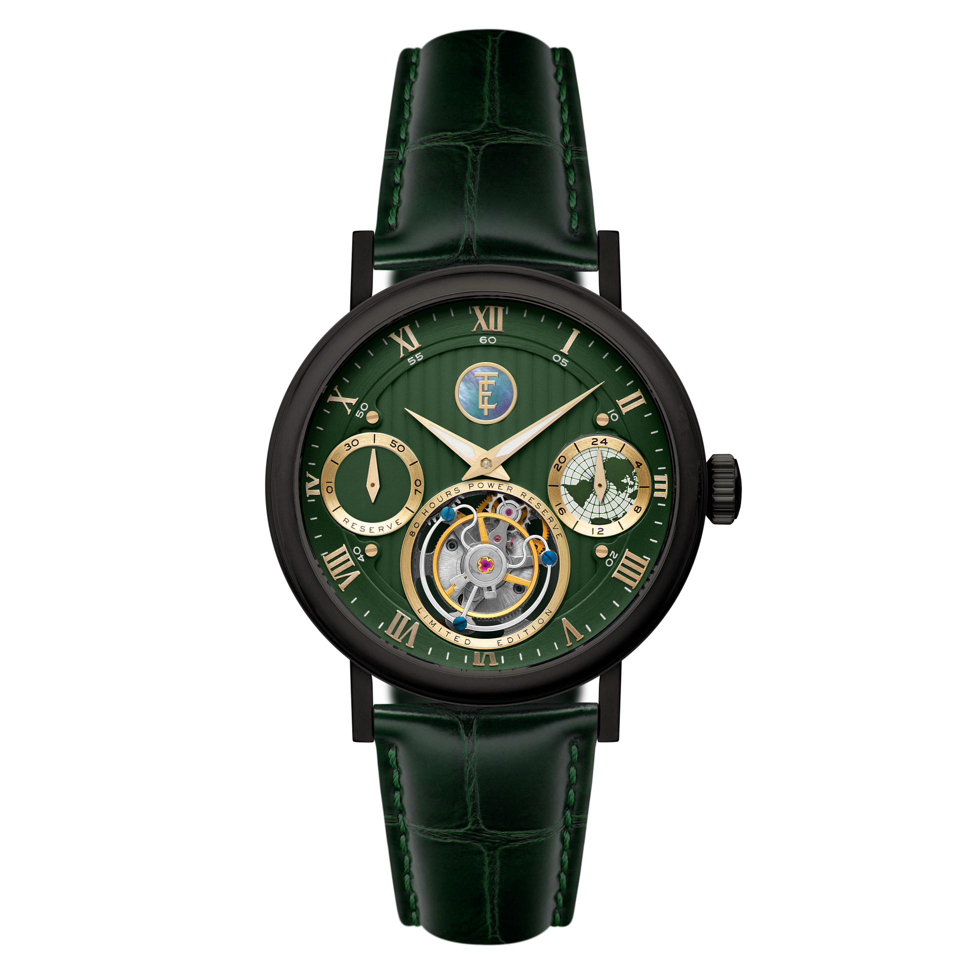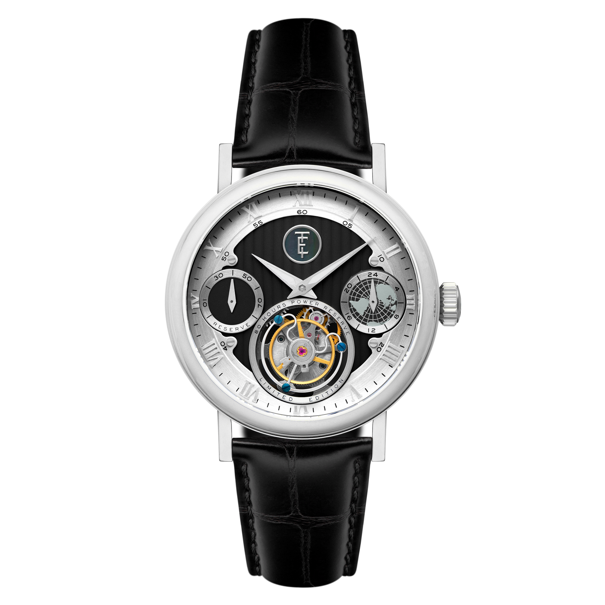 This limited edition Thomas Earnshaw timepiece showcases celestial-inspired design paired with sophisticated mechanical engineering. The 43mm case houses a visible tourbillon mechanism, a hallmark of precision watchmaking that compensates for gravitational effects to enhance accuracy. The Halley collection draws inspiration from astronomical themes, making this watch a compelling choice for those who appreciate both horological craftsmanship and cosmic aesthetics. Built with mechanical movement and presented as a limited release, this piece combines technical excellence with collectible appeal for discerning watch enthusiasts.