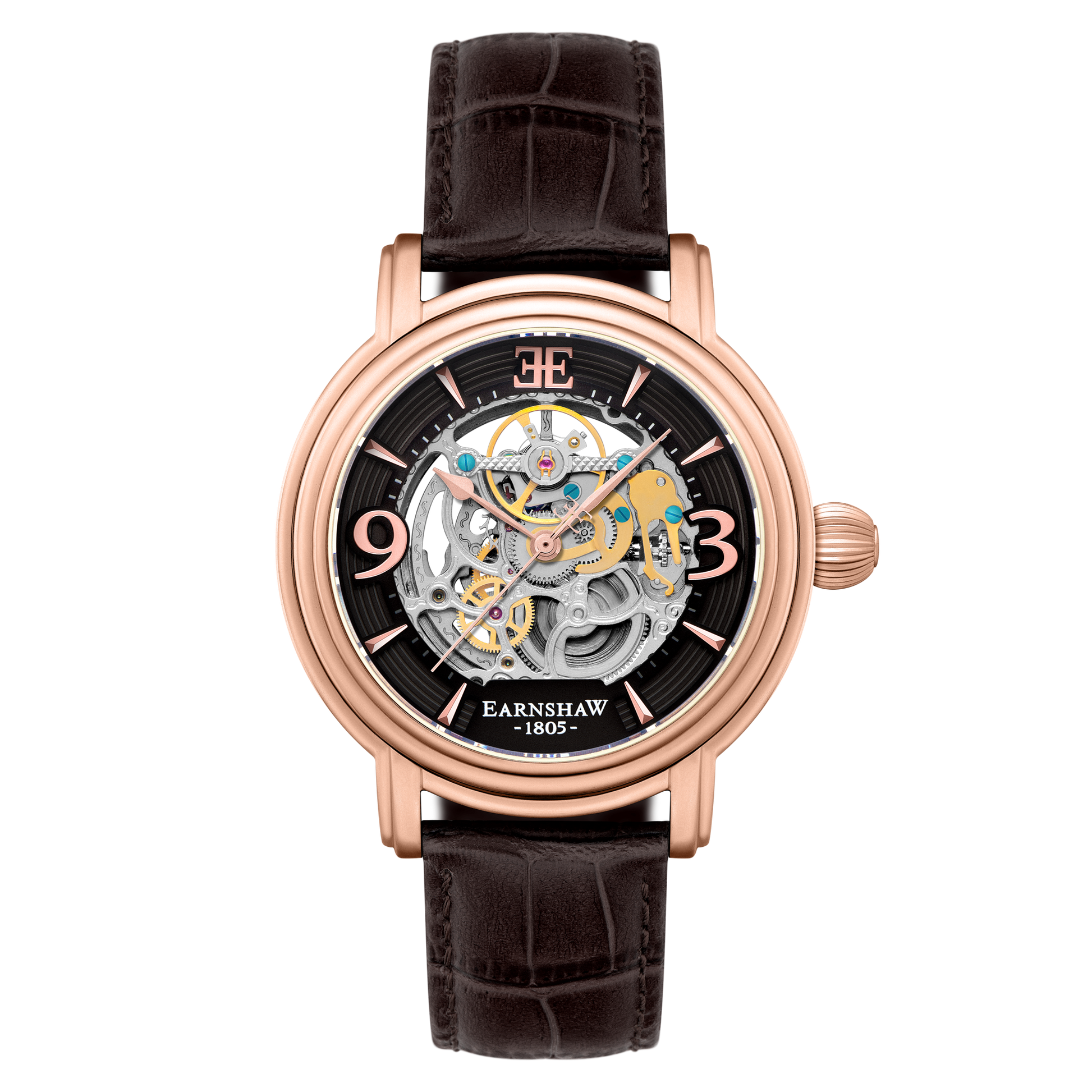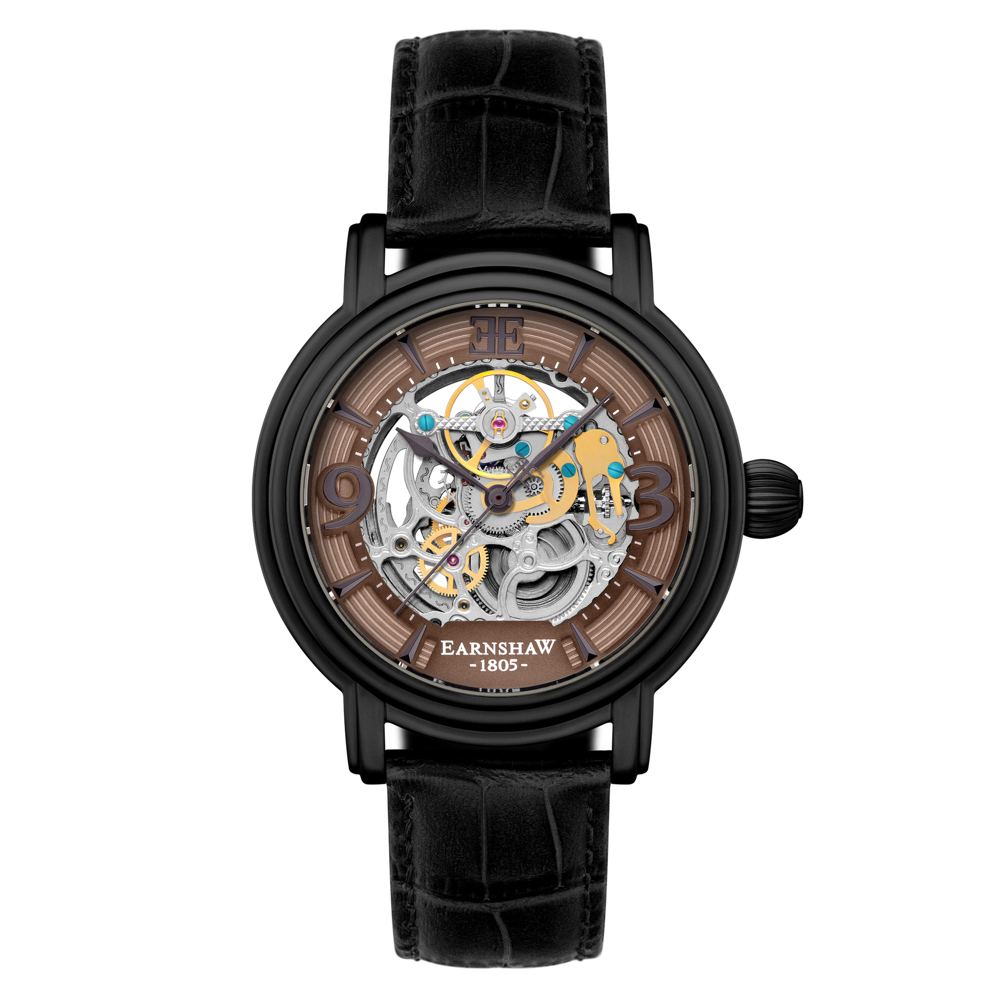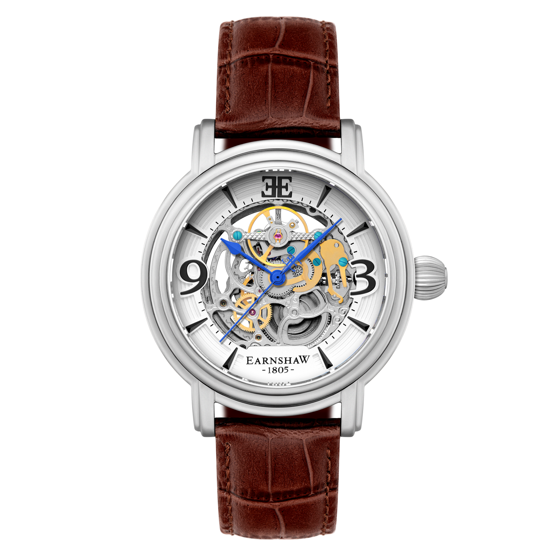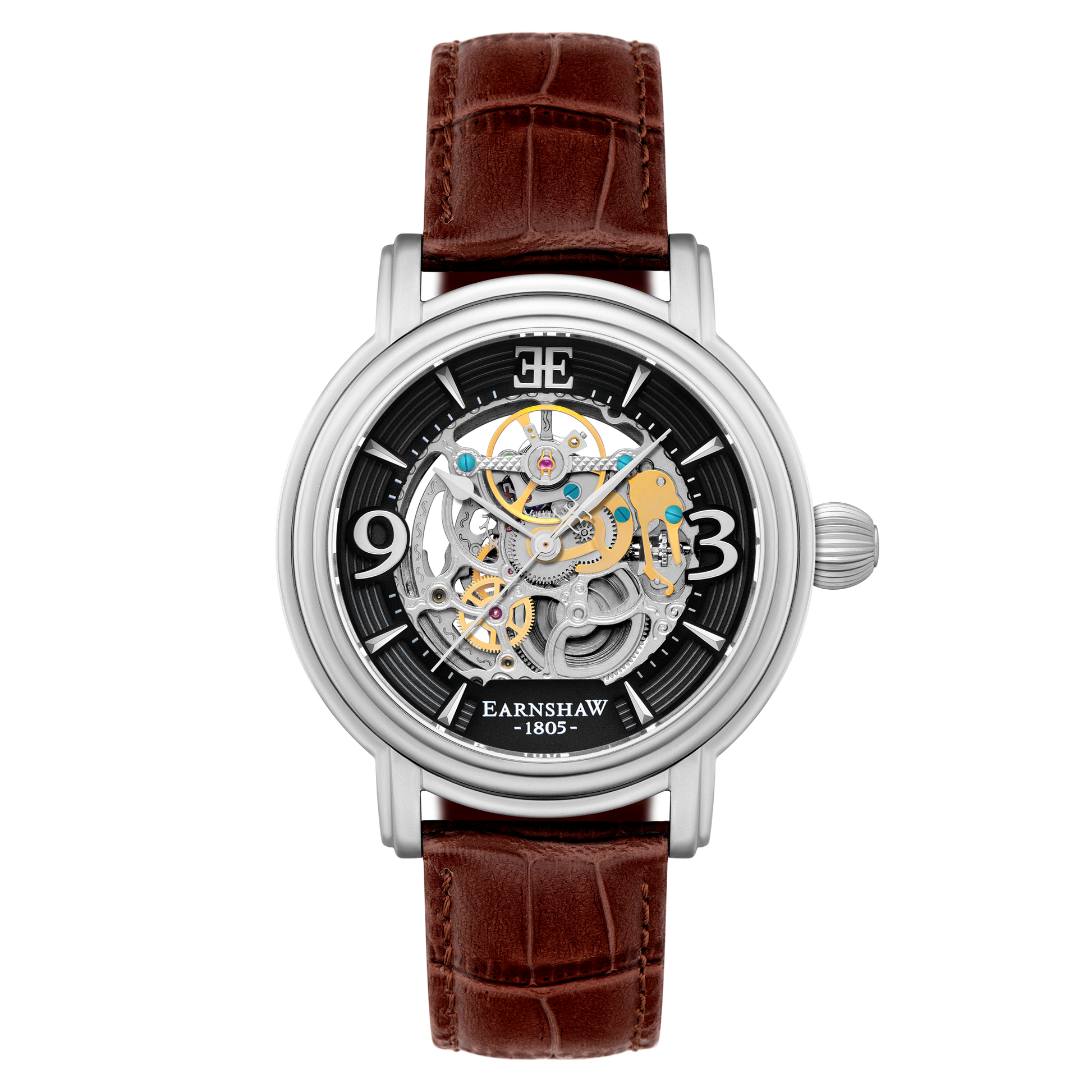 The Thomas Earnshaw Longcase Grande represents horological craftsmanship at its finest. This 48mm timepiece showcases a skeletonized automatic movement, revealing the intricate mechanical artistry that powers each passing second. The substantial case diameter commands presence on the wrist, while the open dial design offers an unobstructed view of the watch's beating heart. Crafted for the discerning collector who appreciates engineering excellence and traditional watchmaking heritage, this strap watch delivers both visual sophistication and reliable timekeeping performance.