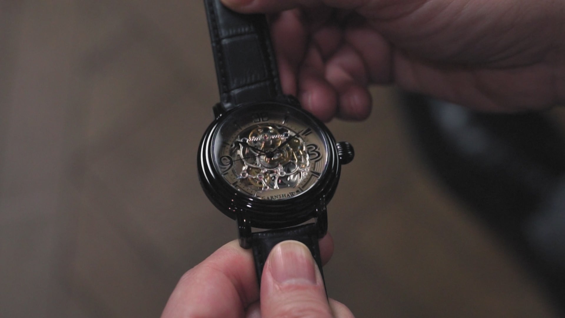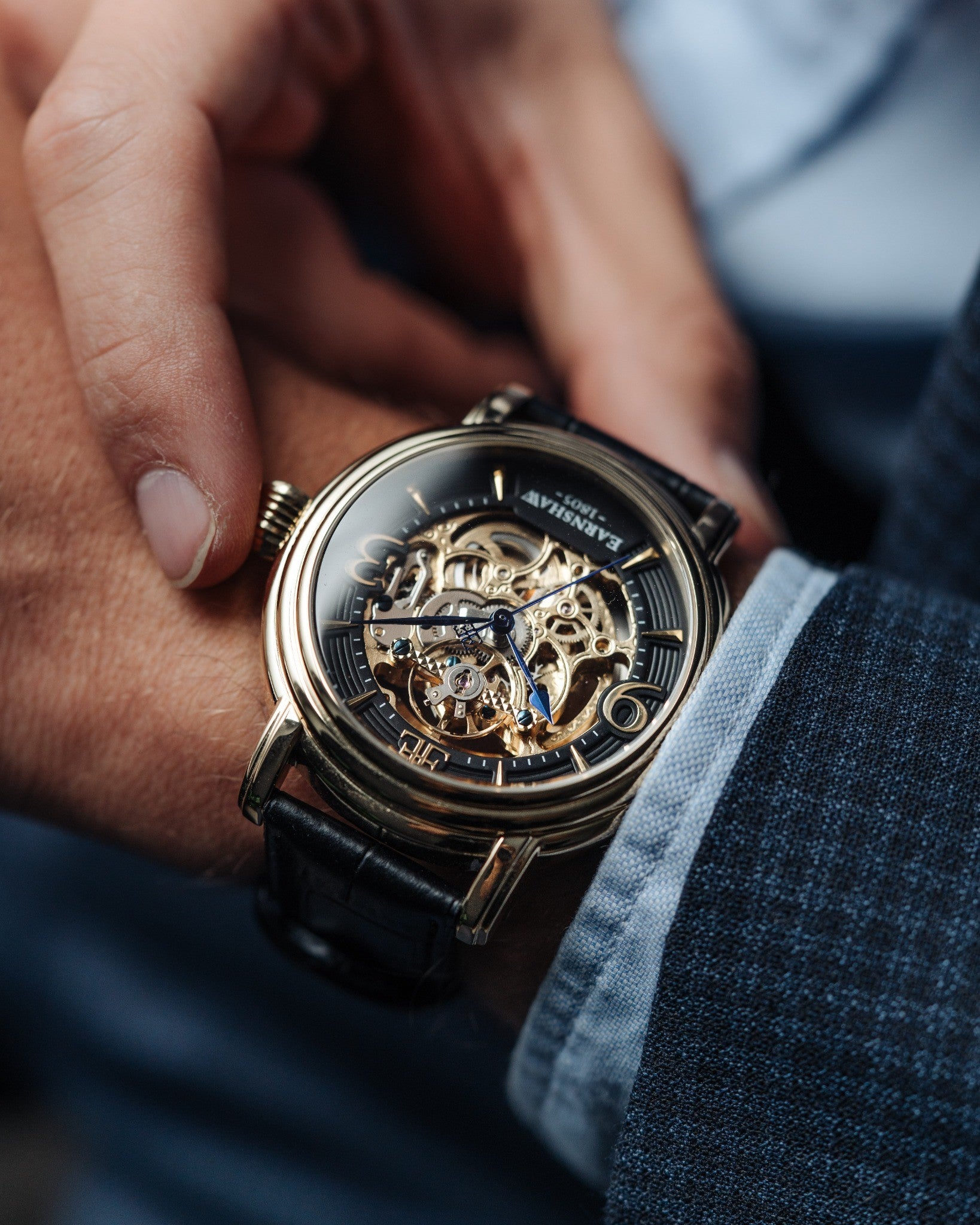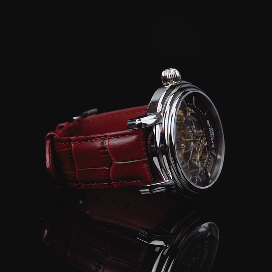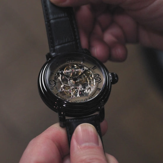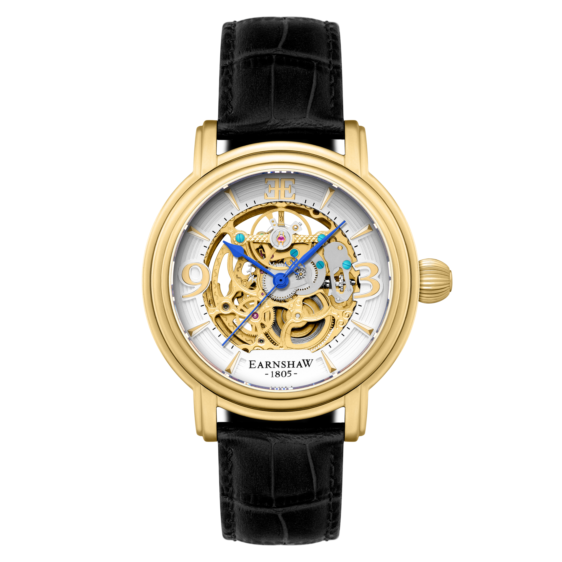 The Thomas Earnshaw Longcase Grande represents horological craftsmanship at its finest. This 48mm timepiece showcases a skeletonized automatic movement, revealing the intricate mechanical artistry that powers each passing second. The substantial case diameter commands presence on the wrist, while the open dial design offers an unobstructed view of the watch's beating heart. Crafted for the discerning collector who appreciates engineering excellence and traditional watchmaking heritage, this strap watch delivers both visual sophistication and reliable timekeeping performance.