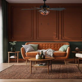 The 52" W Magna Carta Indoor Tiffany Stained Glass Oil Rubbed Bronze Ceiling Fan with Remote Control is an elegant addition to any room, offering a blend of style and functionality. This fan features 5 reversible blades in rich barnwood and light driftwood, ensuring versatility and a classic appeal. The stunning Tiffany-style stained glass adds a splash of color and artistic flair, creating a mesmerizing focal point in your space. The light kit provides practical illumination, while the included remote control offers effortless operation, allowing you to adjust settings with ease.