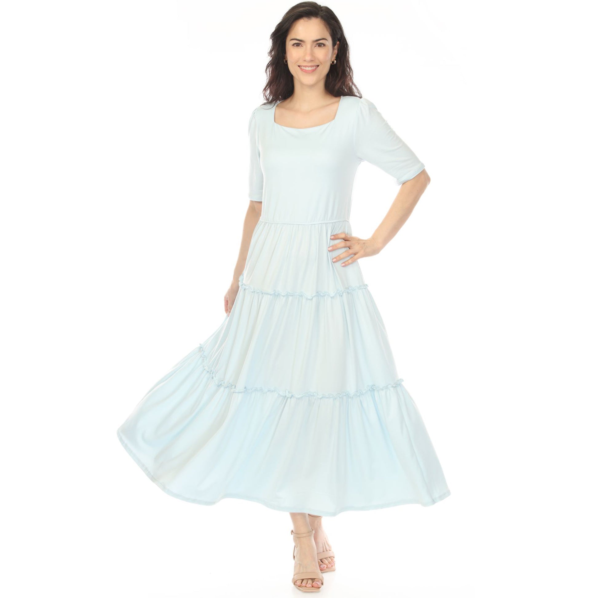 Make a graceful statement in this maxi dress that effortlessly combines contemporary design with timeless sophistication. The distinctive square neckline frames your face beautifully while the drop sleeves create an elegant, relaxed silhouette that flatters every figure. Tiered layers add dimension and movement, giving you a flowing, romantic look that commands attention. The solid print keeps the focus on the dress's impeccable construction and flattering proportions, making it perfect for everything from garden parties to evening events. Invest in a dress that delivers undeniable style and comfort—one that makes you feel absolutely stunning.
